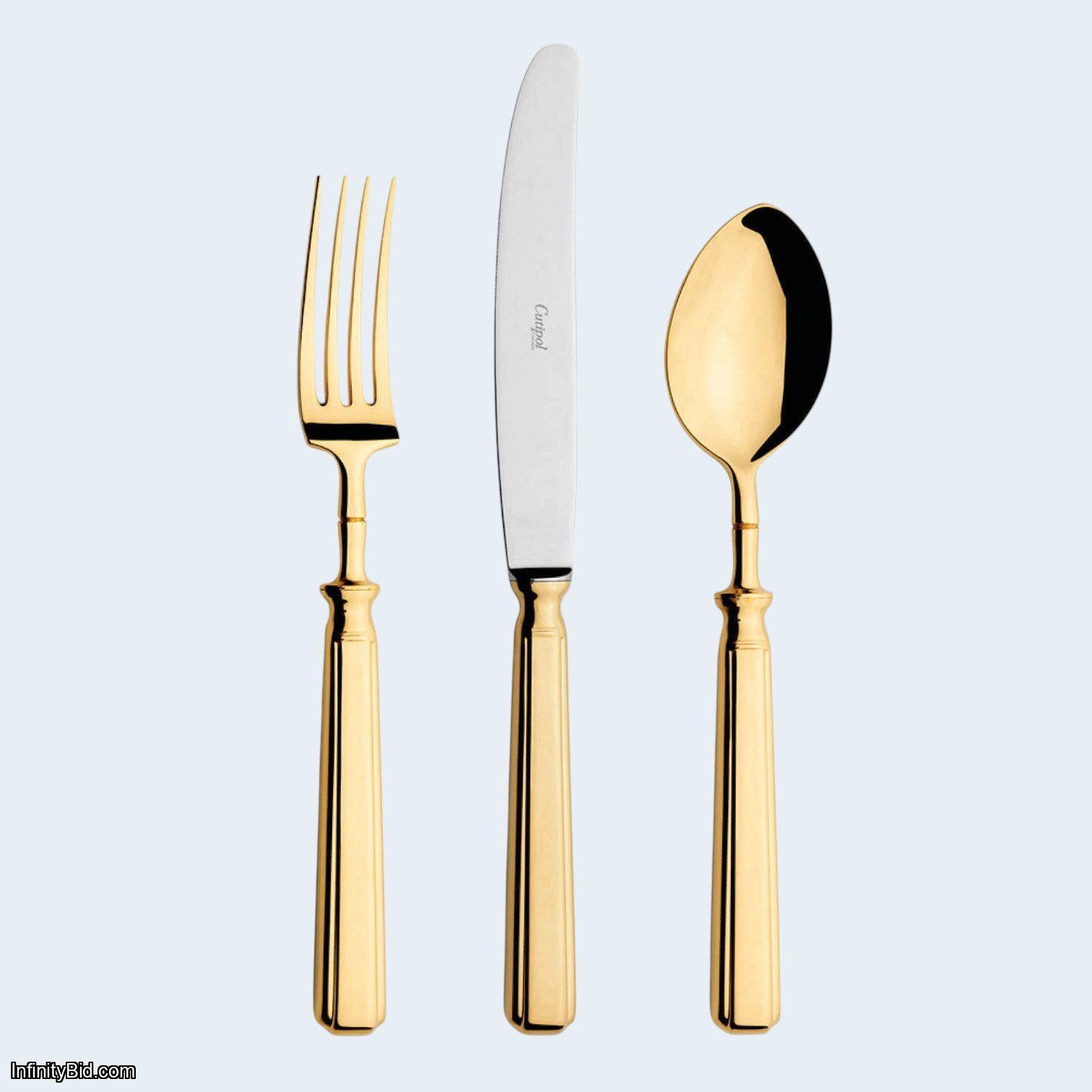 Elevate your table with the Cutipol Piccadilly 75-Piece Cutlery Set in Mirror Polished Gold Plated finish, a refined statement of contemporary European tableware design. Crafted in Portugal by Cutipol, this elegant collection combines sleek modern lines with exceptional craftsmanship, making it ideal for luxury homes, elegant entertaining, and everyday fine dining.