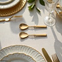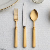 An exceptional statement of refinement, the Cutipol Piccadilly Matte Gold cutlery set is perfect for those who appreciate elegant design, superior craftsmanship, and complete table versatility.