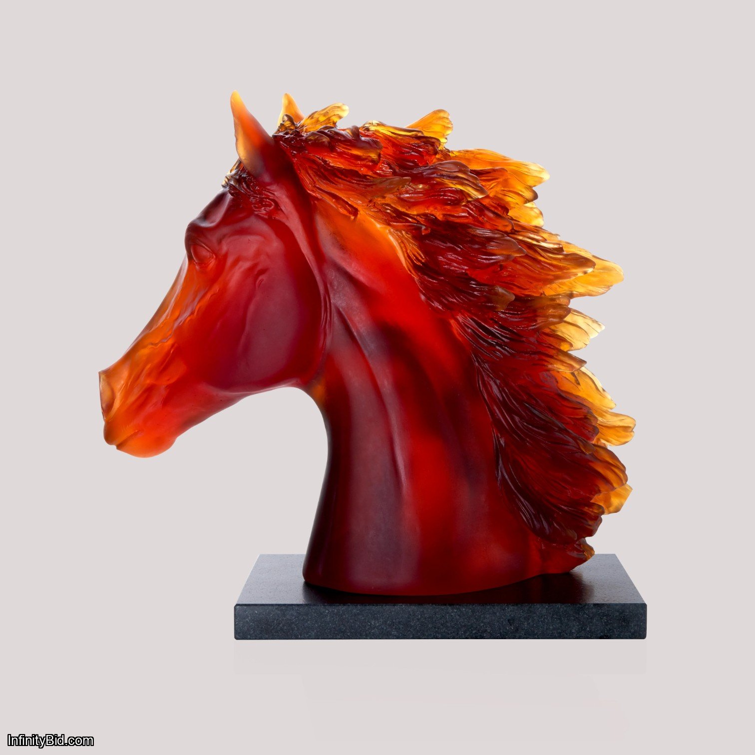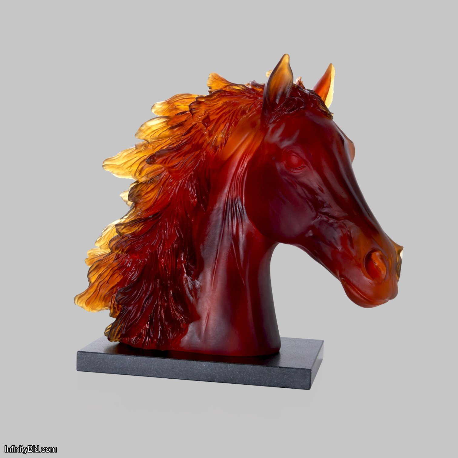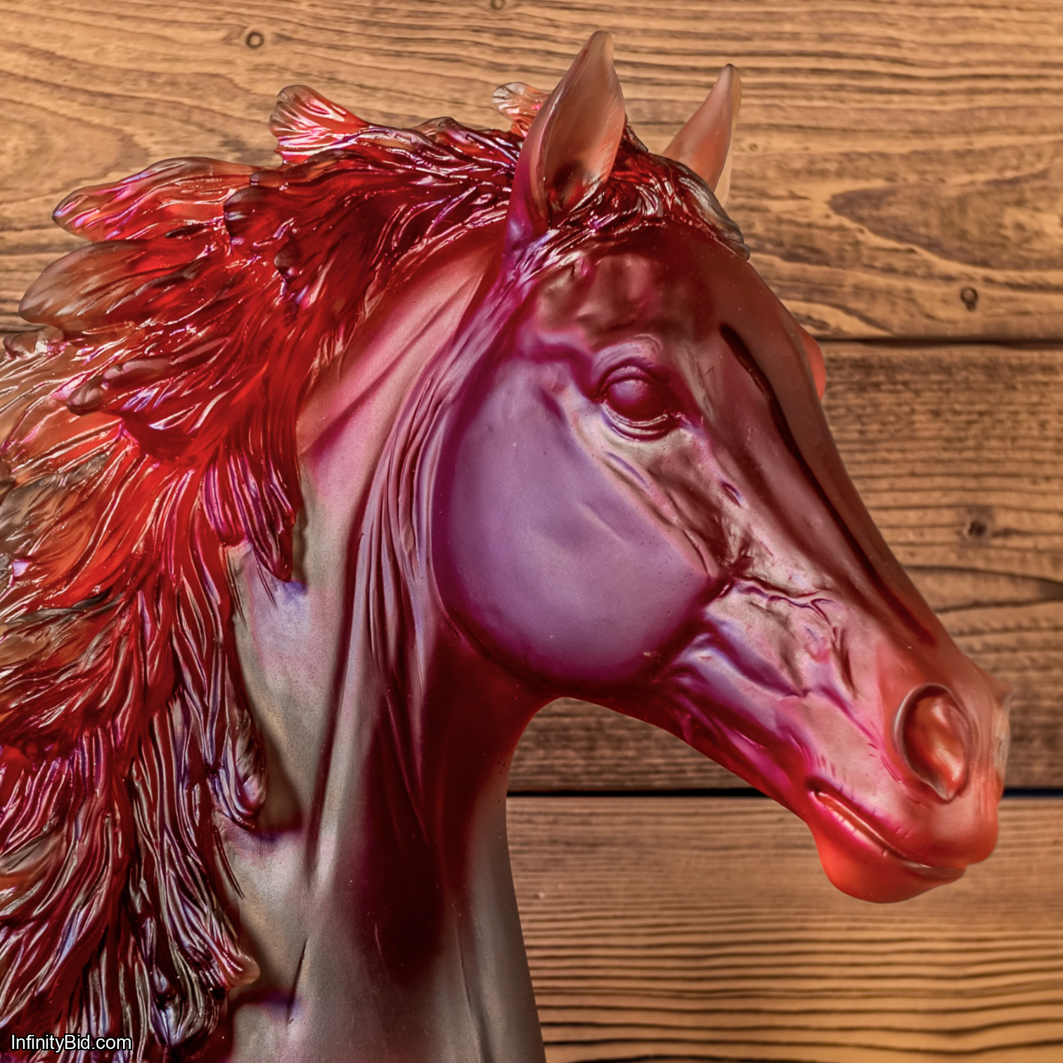 A refined and expressive sculpture, the Daum Amber Horse Head is an exceptional collectible for lovers of fine crystal, equestrian art, and timeless decorative masterpieces.