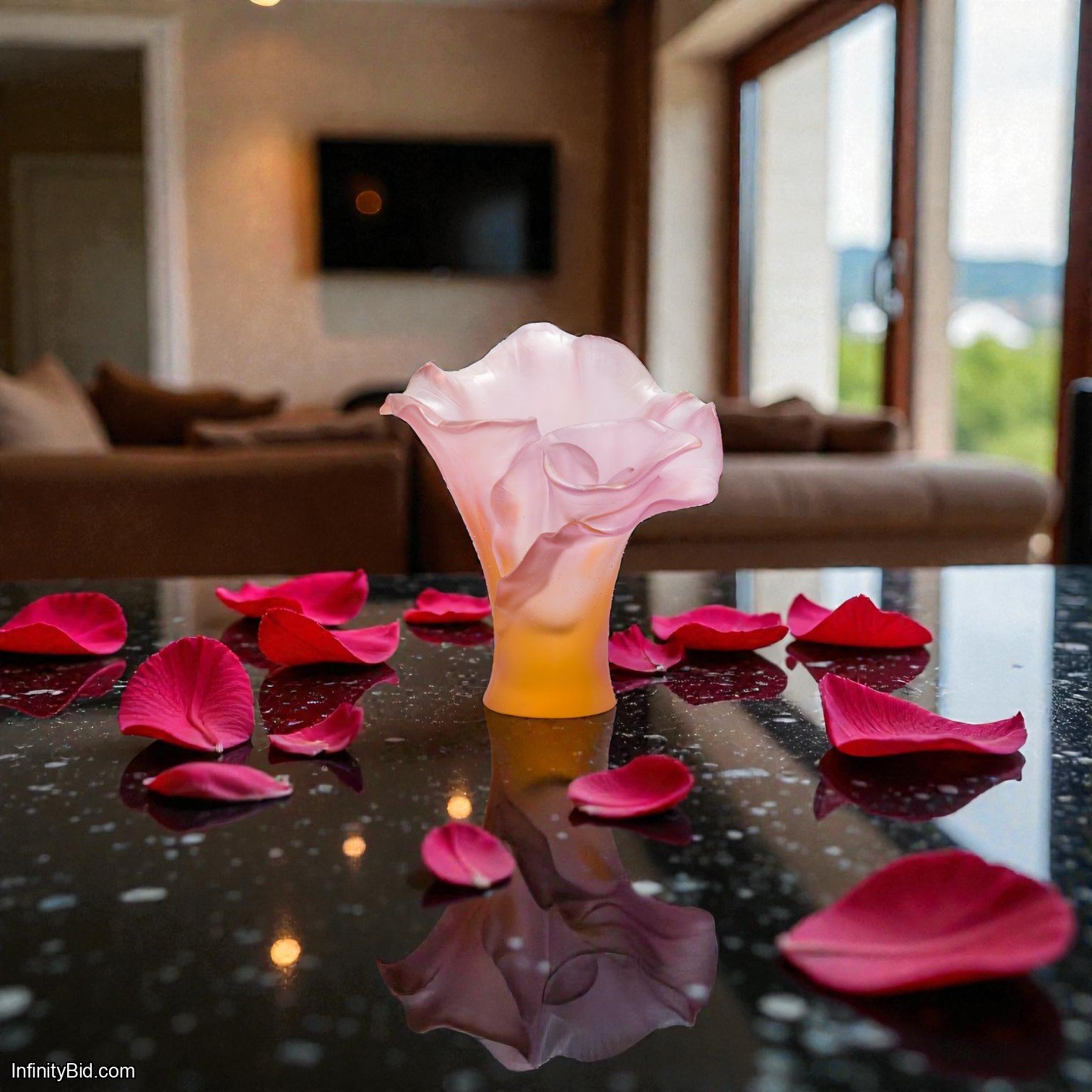 Delicate and luminous, the Daum Arum Small Vase in Amber-Pink is a graceful homage to the fleeting beauty of a blooming arum. Crafted in Daum’s iconic pâte de verre technique, this exquisite piece radiates warmth, softness, and refined elegance.