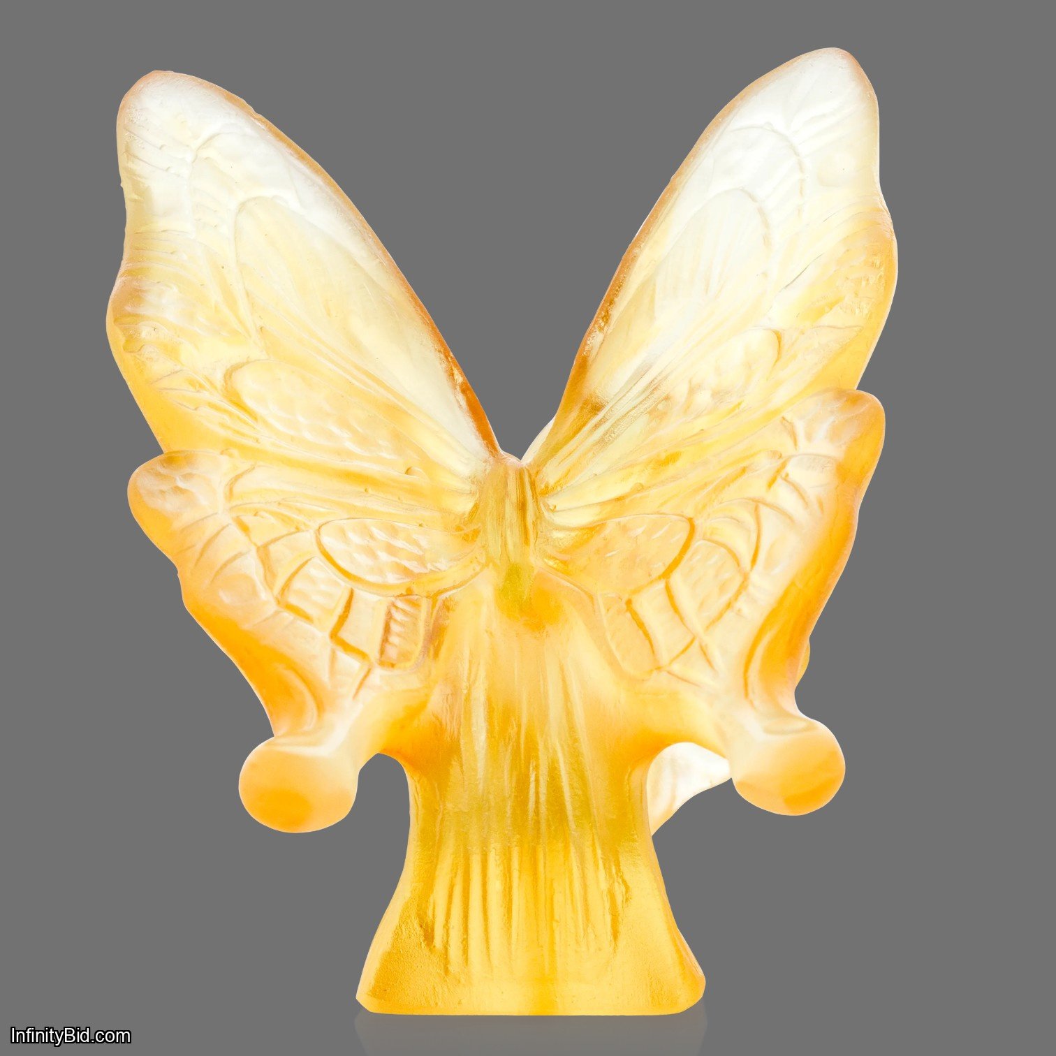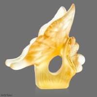 A luminous tribute to nature, this amber and yellow butterfly sculpture by Daum captures the joyful elegance of butterflies dancing in sunlit gardens. Crafted using the centuries-old pâte de verre technique, the piece reveals rich amber tones, warm golden highlights, and delicate transparencies that come alive in changing light.