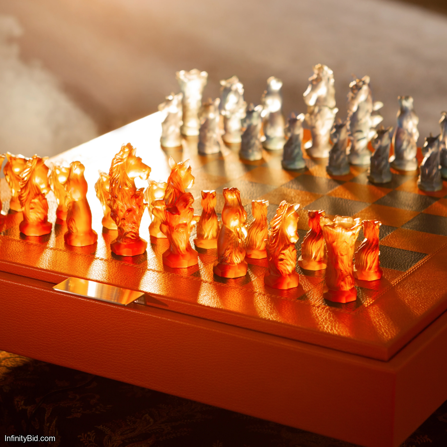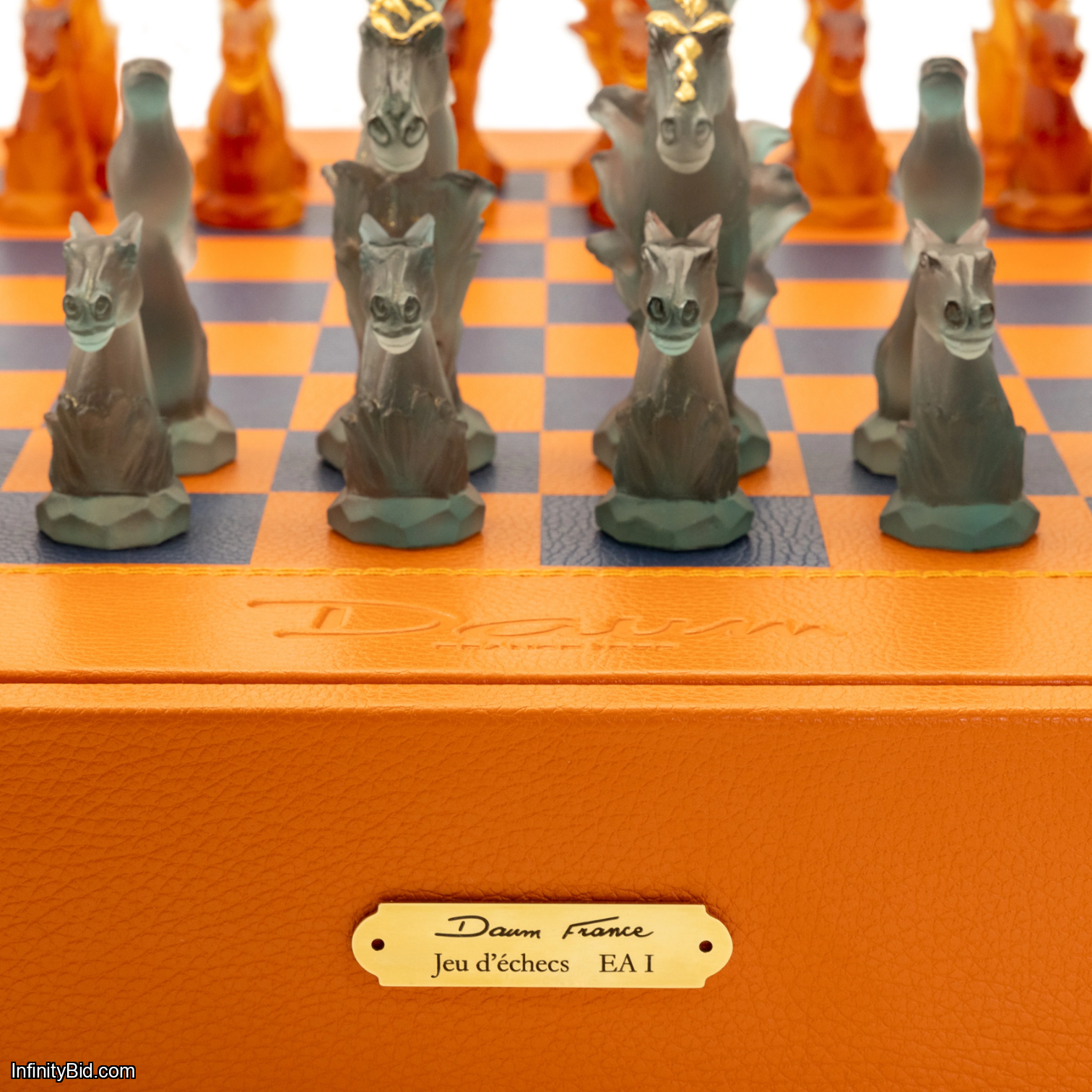 Daum Cavalcade Chess Set – Limited Edition of 50 – Pâte de Verre Crystal and Leather – SKU: 05229