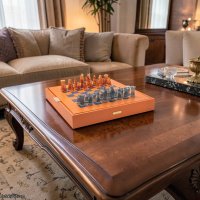 Hidden Luxury Compartment: The pieces are housed in a specialized orange leather case beneath the board, protected by a luxurious sheet of leather. This "reveal" turns every game into a ceremonial event.
