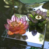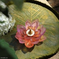 Daum Jardin de Lotus Incense Holder - Amber-Pink French Crystal