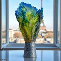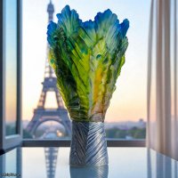 A spectacular fusion of artistic heritage and technical mastery, the Daum Magnum Vase – Fleur de Paon Exotique is one of the most exceptional creations in the Maison’s repertoire. This towering piece required nearly 480 hours of development, with each sculpture undergoing 17 days of meticulous firing in Daum’s crystal furnaces before the intricate finishing, polishing, and mounting process begins.