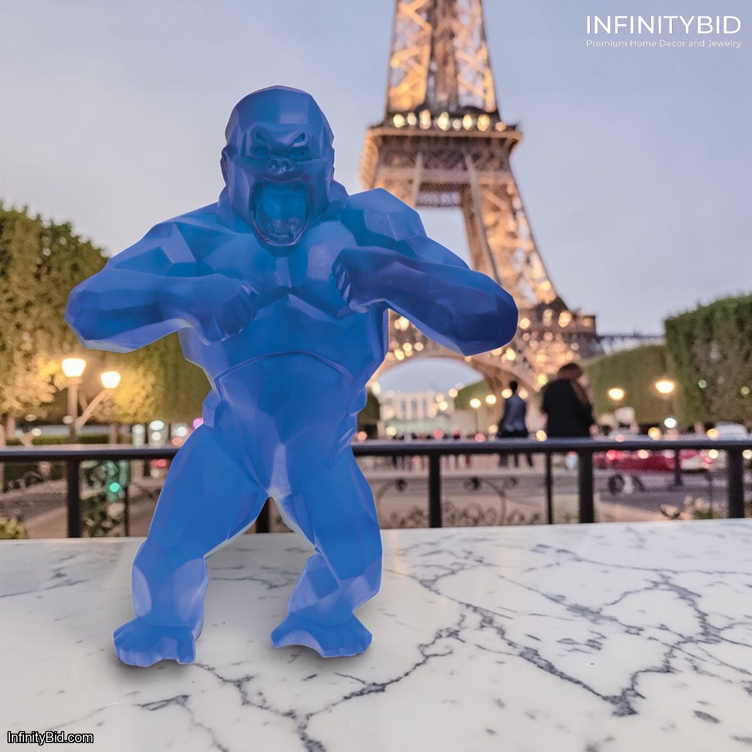 Artistic Mastery in Electric Blue Crystal The Wild Kong is a masterpiece of faceted design, a signature of Orlinski’s Born Wild concept. By utilizing Daum’s centuries-old glass paste technique, the sculpture achieves a level of detail and textural depth impossible to find in other materials. The imposing silhouette of the gorilla, frozen in a defiant and eternal motion, transforms any interior into a high-end gallery space, blending the raw energy of the animal kingdom with the refined elegance of French crystal.