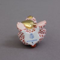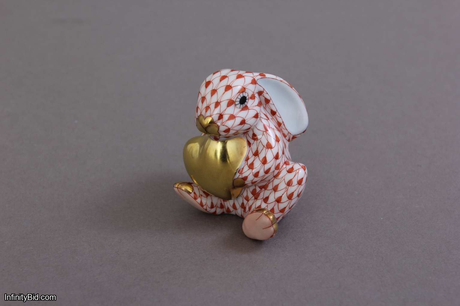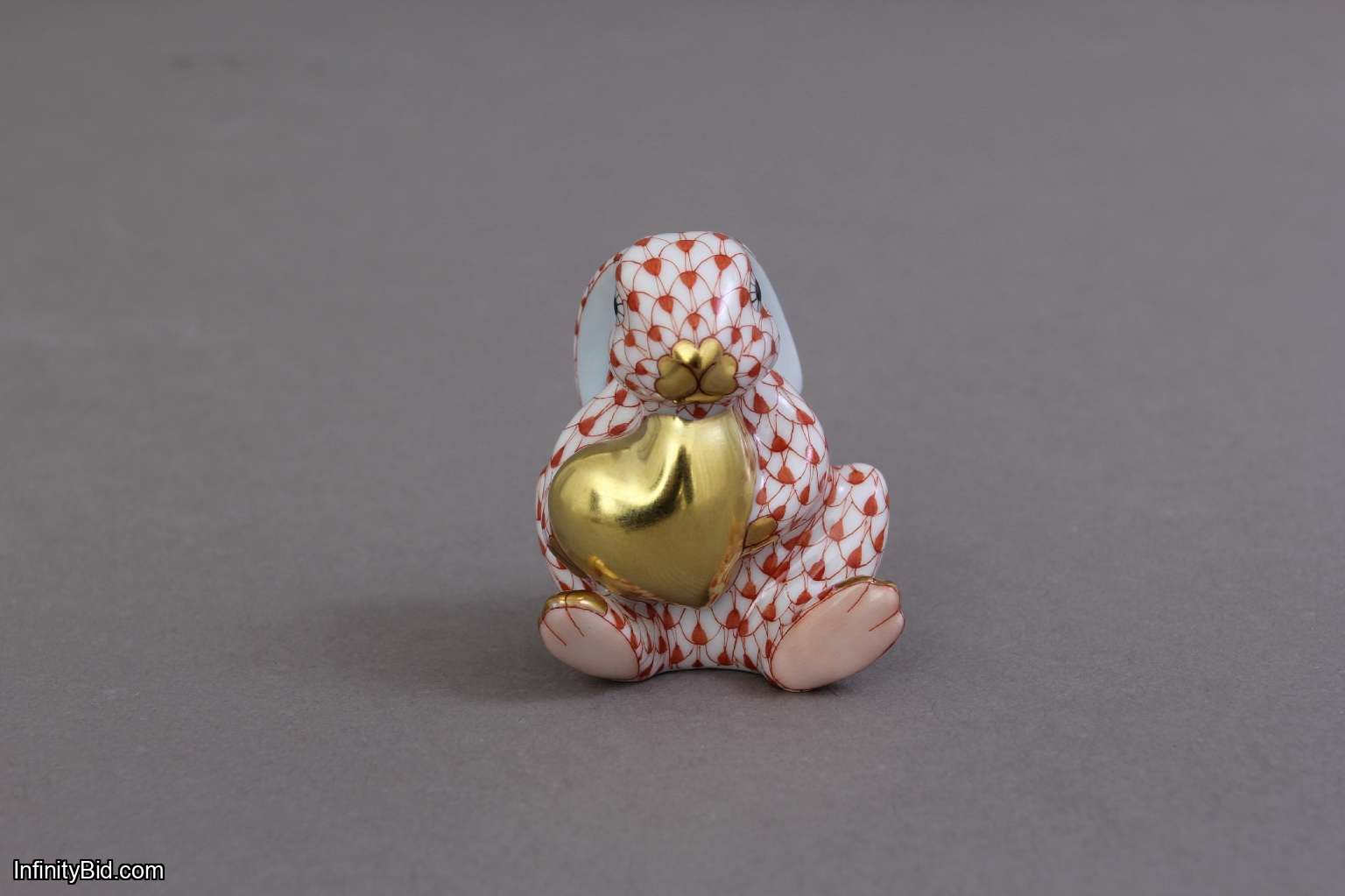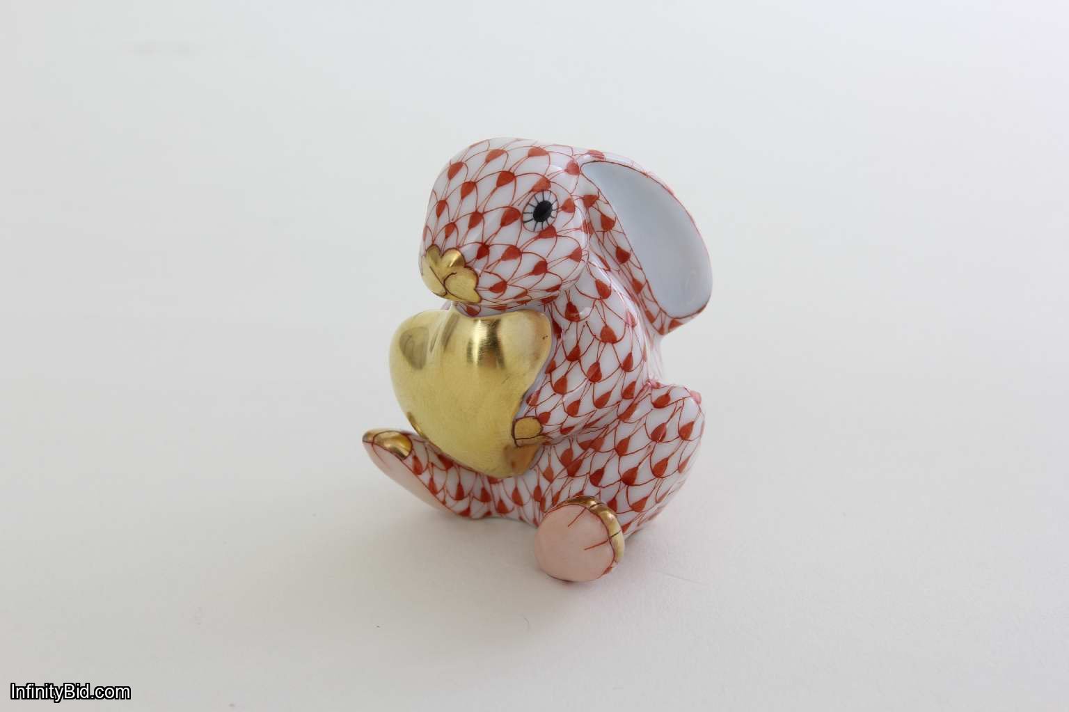 A timeless symbol of love and fine European craftsmanship, the Herend Bunny with Heart is a charming hand-painted porcelain figurine created in Hungary by the world-renowned Herend porcelain manufactory. Decorated in Herend’s iconic Red Fishnet pattern and highlighted with 24-karat gold accents, this delightful bunny gently holds a golden heart, symbolizing affection, warmth, and joy.