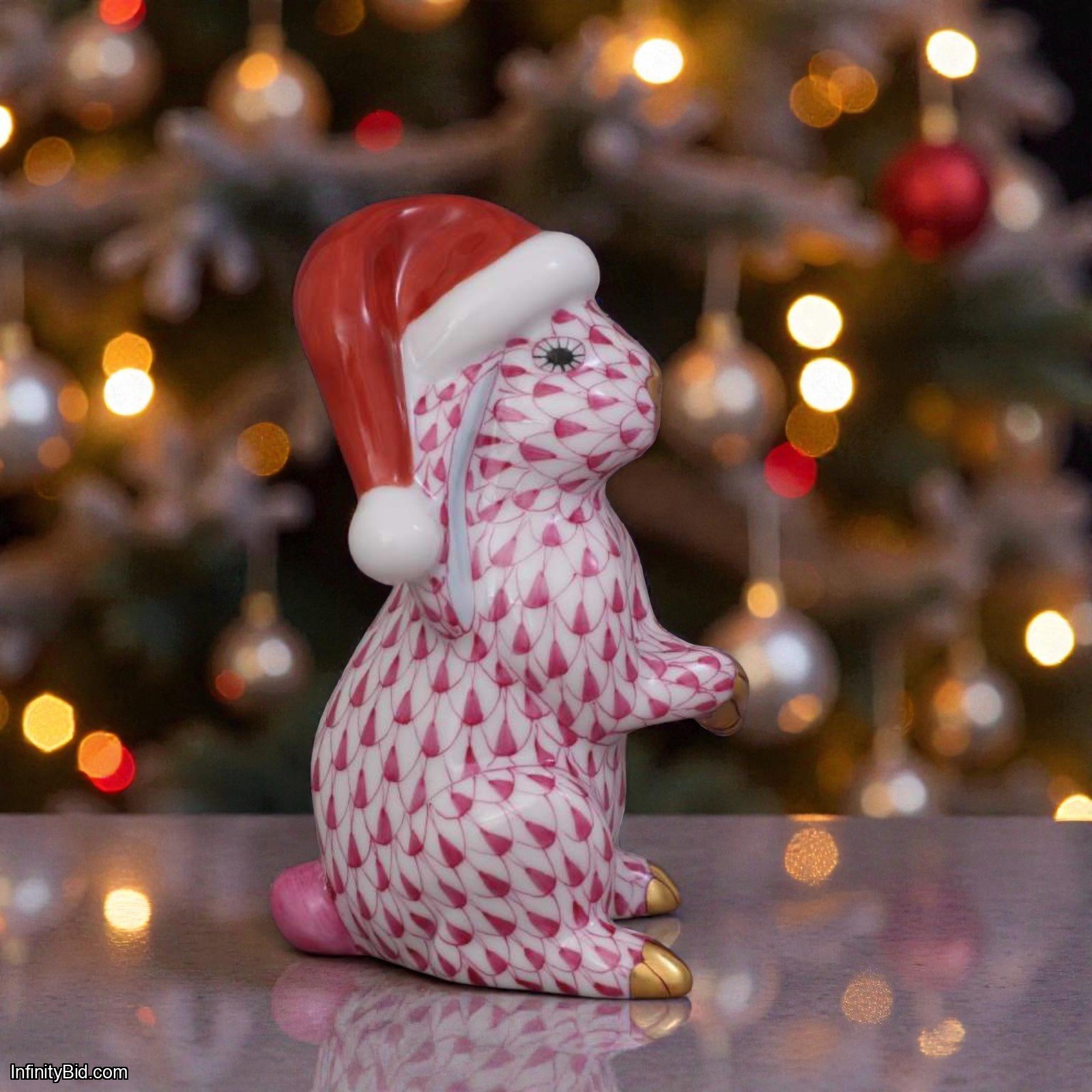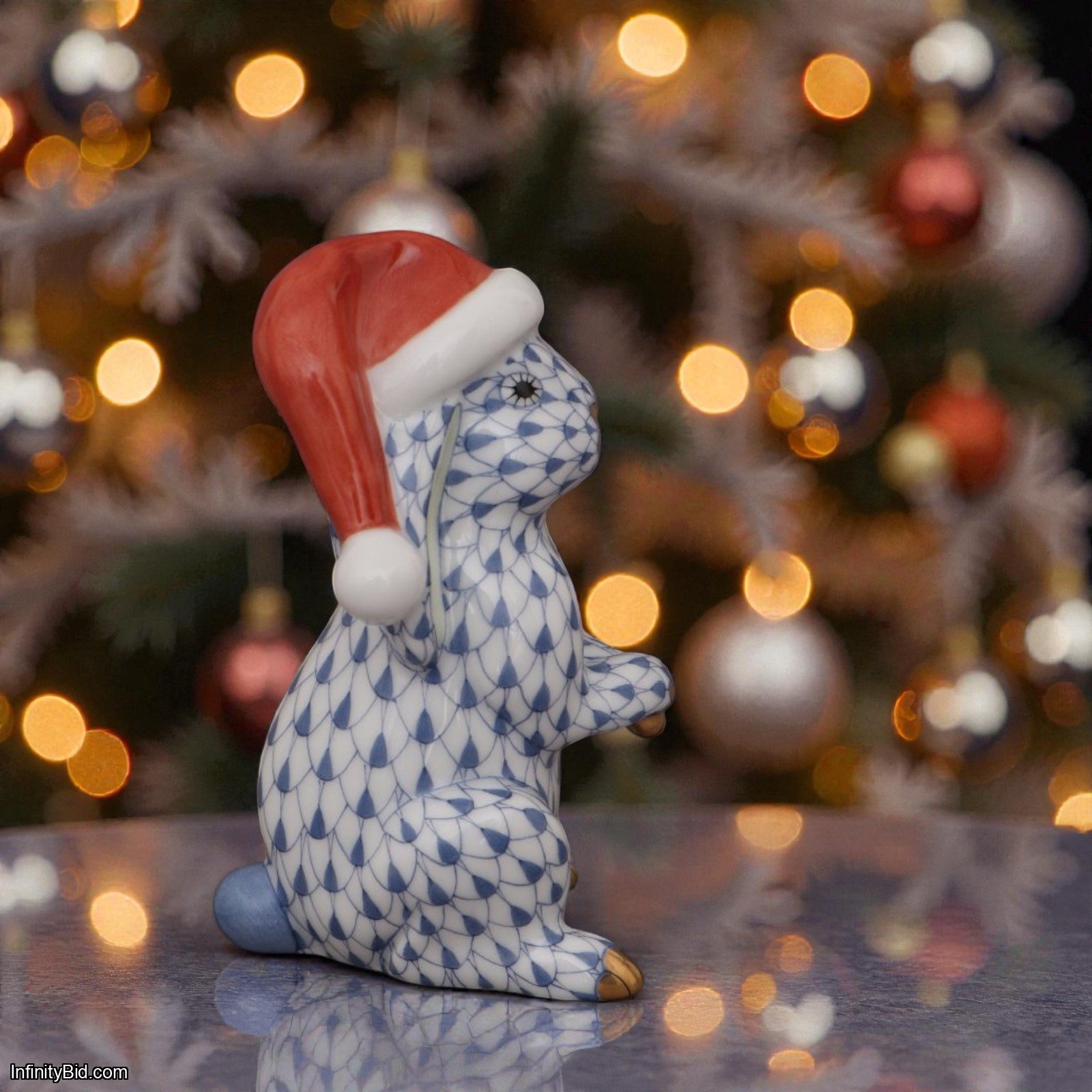 A charming trio of handcrafted Herend porcelain Christmas bunnies, each beautifully detailed and individually marked with its unique SKU. Perfect for holiday décor, collectors, or gifting.