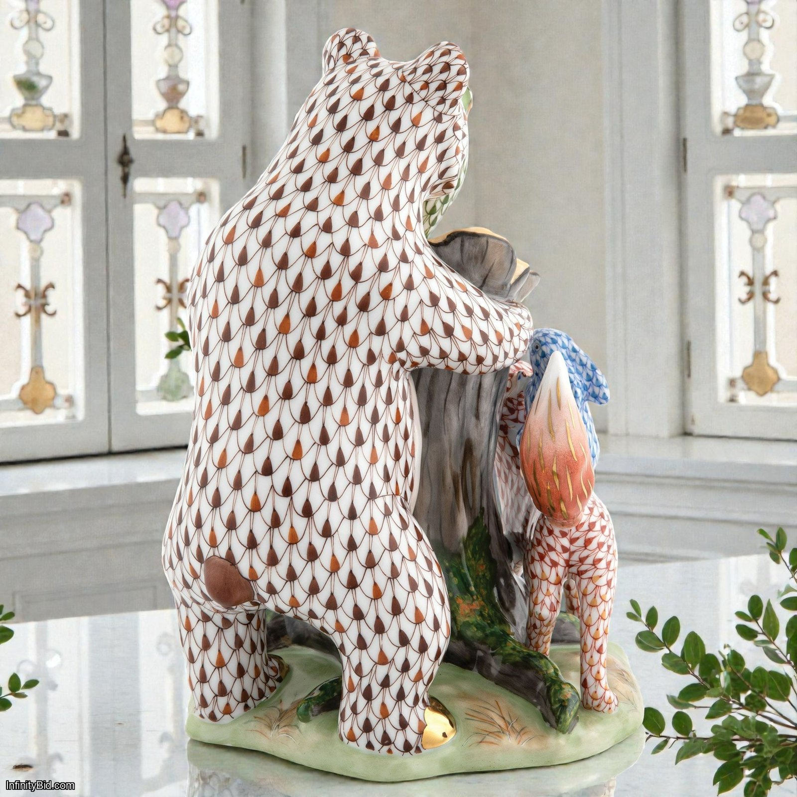 Discover a rare and enchanting piece from Herend’s Limited Edition “Forest Friends” Collection — a beautifully hand-painted porcelain figurine featuring five woodland animals: a bear, rabbit, fox, squirrel, and owl. This masterpiece showcases Herend’s exceptional craftsmanship, vibrant colors, and intricate detailing.