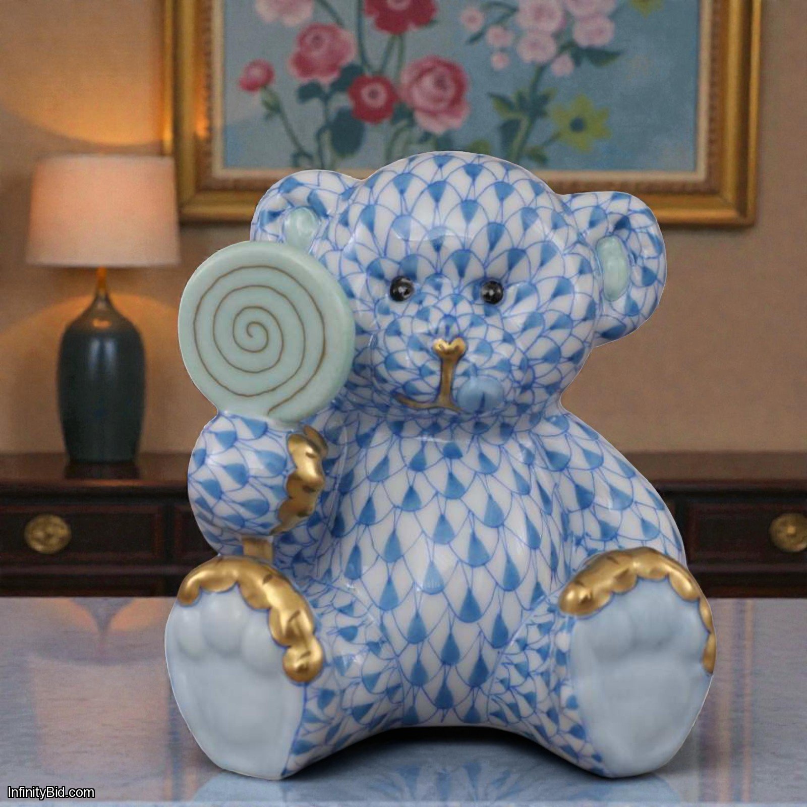 Bring charm to your collection with the Herend Sweet Tooth Teddy, an authentic hand-painted porcelain figurine crafted in Hungary. Featuring Herend’s signature attention to detail, this adorable teddy showcases warm colors, intricate brushwork, and a playful expression that embodies the whimsy of classic Herend artistry.