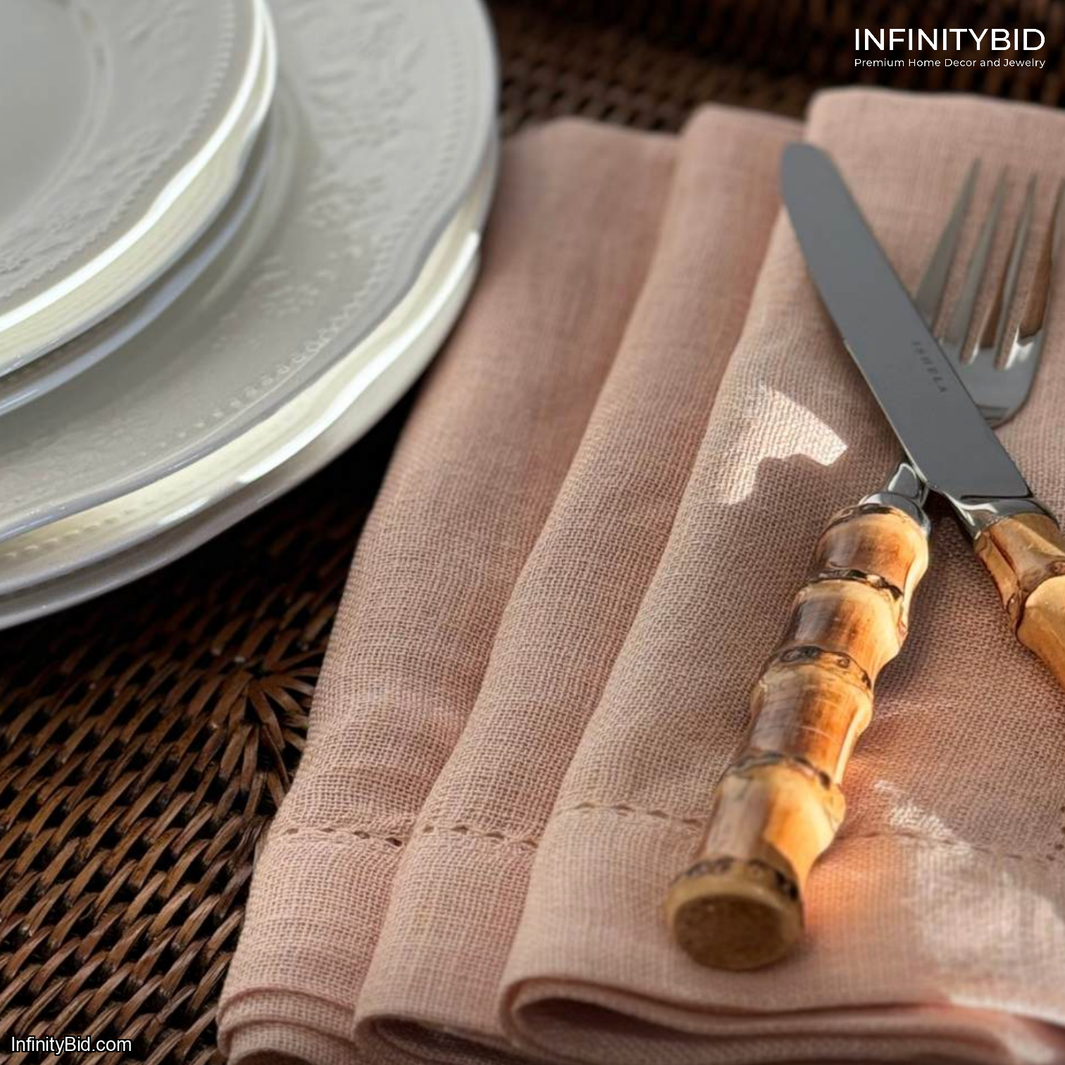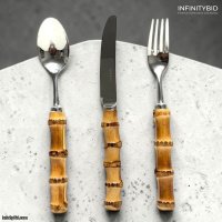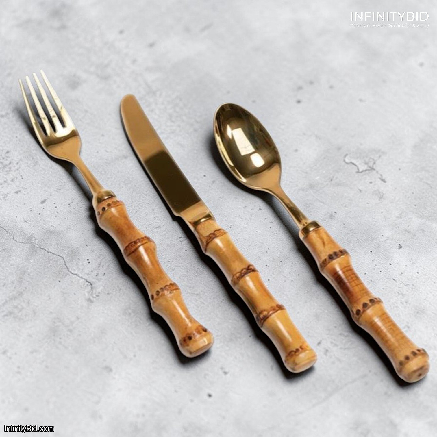 Natural Beauty Meets Professional Durability Each piece in this collection features a real bamboo handle, ensuring that no two pieces are exactly alike. The natural variations in the wood grain and knots provide a tactile, artisanal feel, while the high-grade 317-grade stainless steel ensures exceptional resistance to corrosion and long-lasting durability. This set is designed to serve six people with elegance, offering a complete solution for those who settle for nothing less than extraordinary flatware.
