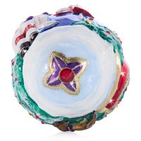 Each ornament is meticulously hand-painted with enamels and glitter, then accented with hand-set European crystals that catch and reflect the light, creating a radiant glow on any Christmas tree. The layered textures and brilliant detailing give this ornament the look and feel of a miniature work of fine art.