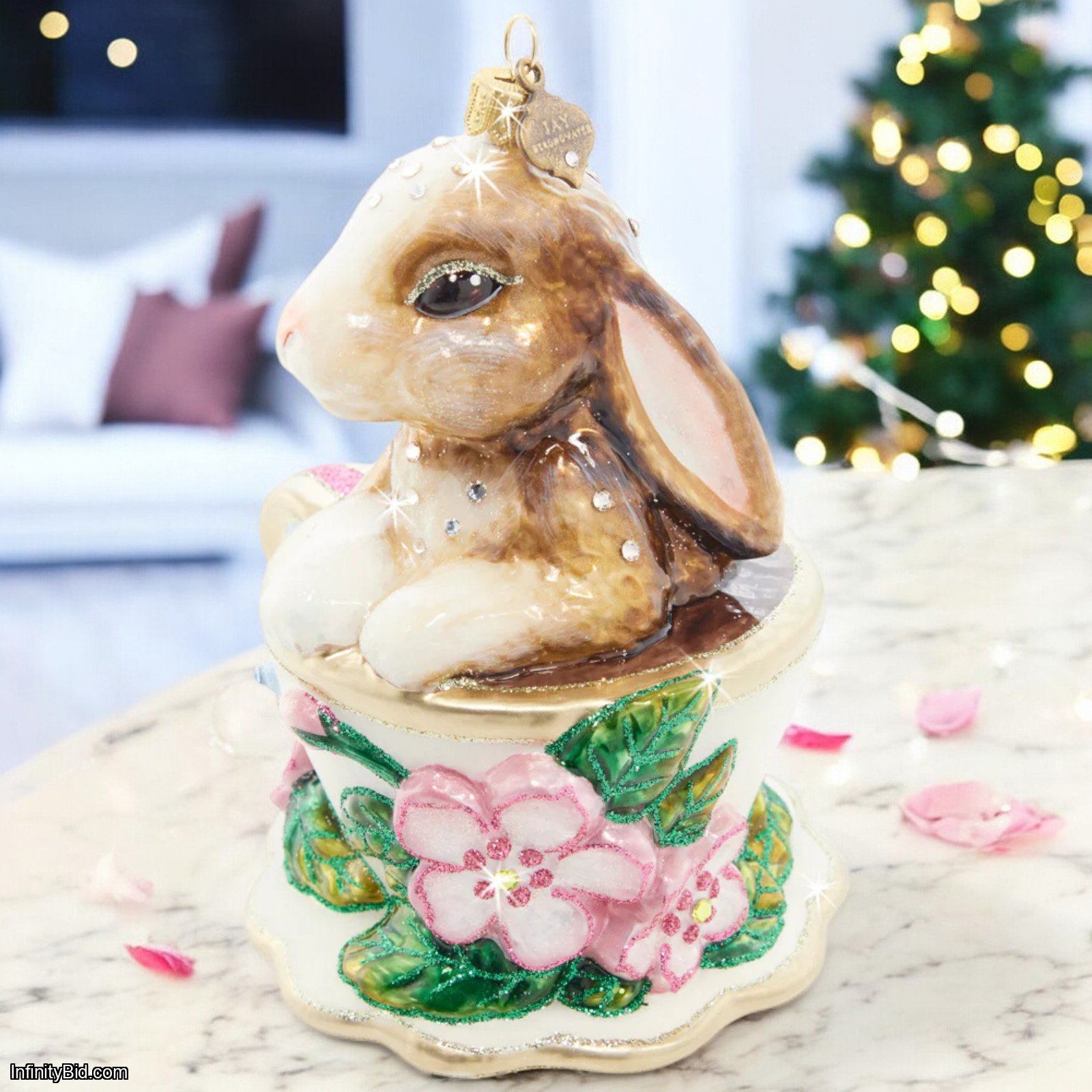 Jay Strongwater Christmas Bunny Teacup Ornament