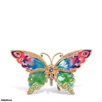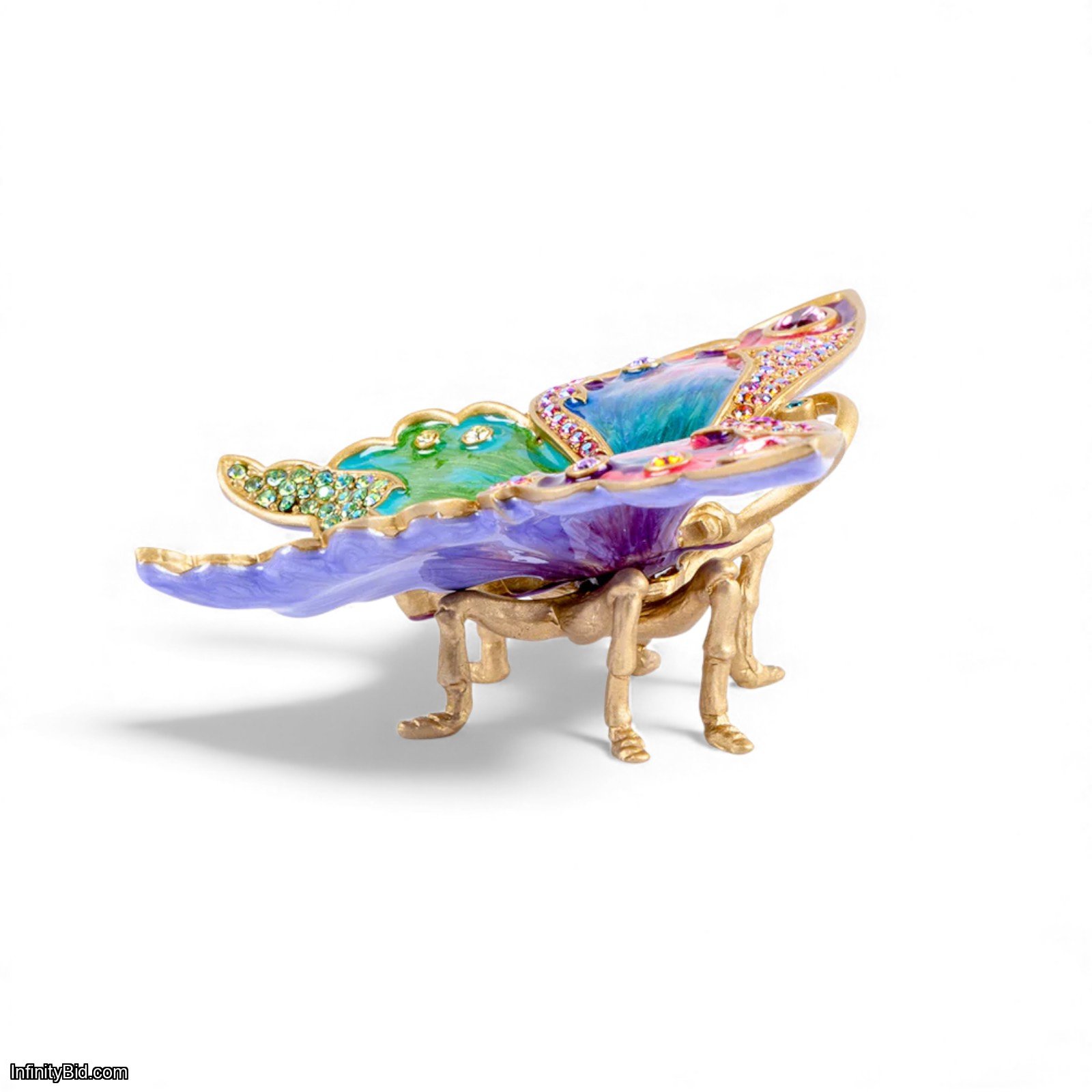Bring a touch of lightness and luxury to your décor with the Lea Medium Butterfly Objet by Jay Strongwater. This exquisite tabletop accent features a jeweled butterfly gracefully lifted on delicate metal legs, as if just alighting to rest. Its wings are meticulously hand-painted in luminous shades of blue enamel and adorned with sparkling European crystals, including striking faceted oval blue stones that catch the light beautifully.
