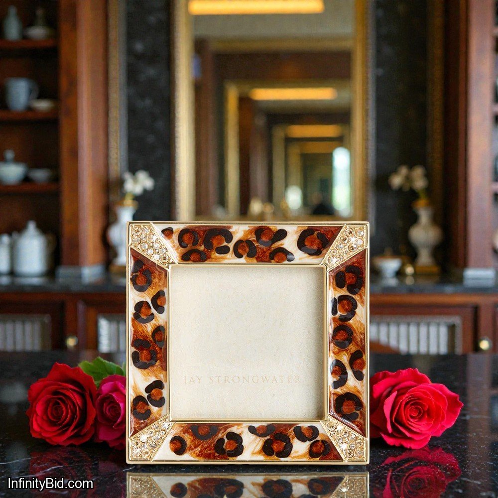 Jay Strongwater Leland Pavé Corner 2" Frame – Amber Leopard
