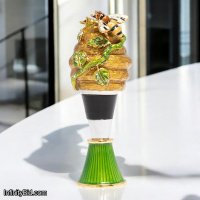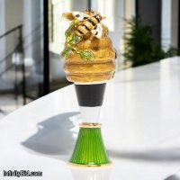 Jay Strongwater Wine Stopper, Beehive Wine Stopper, Swarovski Crystal Wine Stopper, Luxury Wine Accessories, Gold Bee Bottle Stopper, Collectible Barware, Hand-Enameled Wine Stopper, Jay Strongwater Gifts, Designer Wine Gifts, Elegant Wine Stopper with Stand
