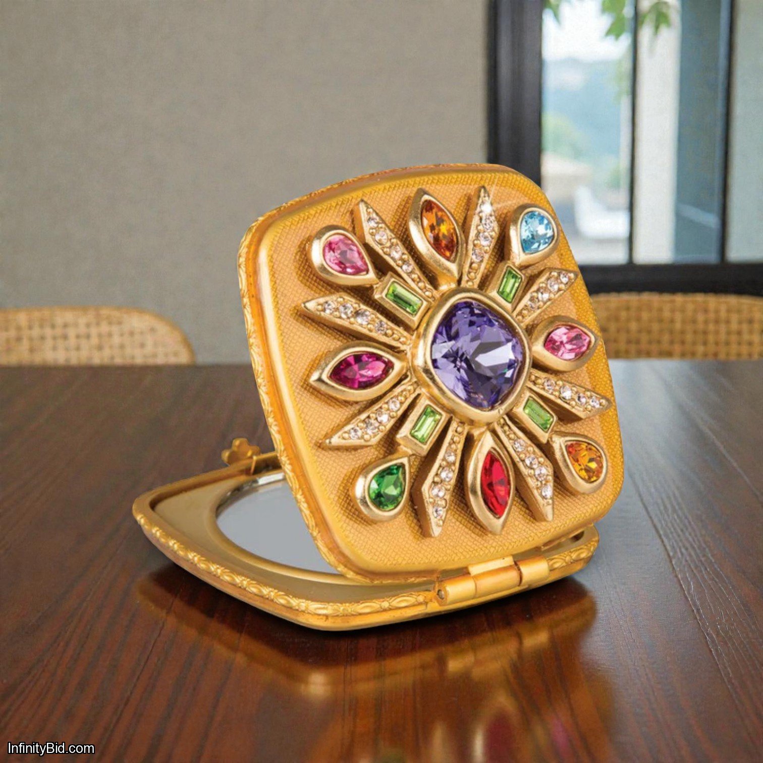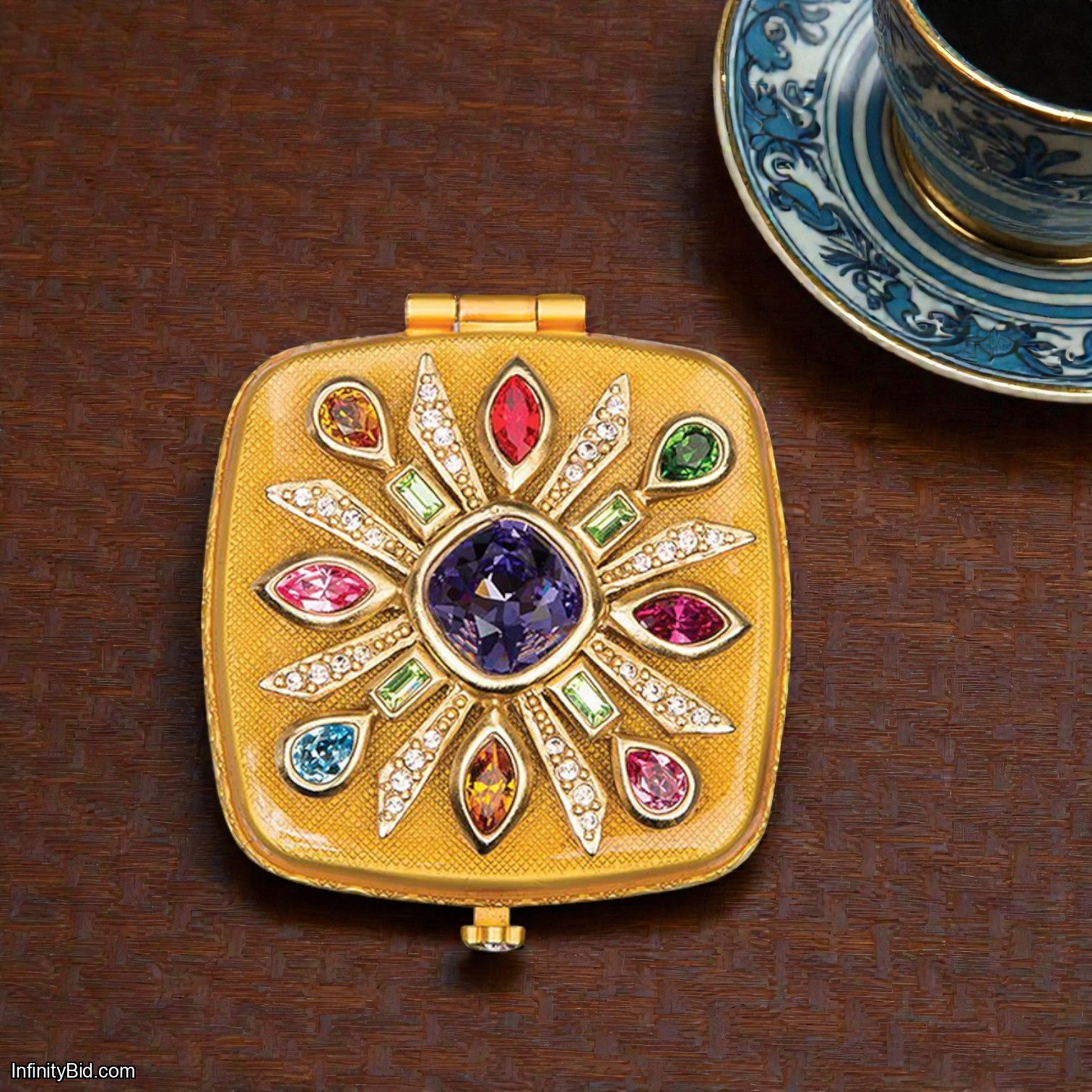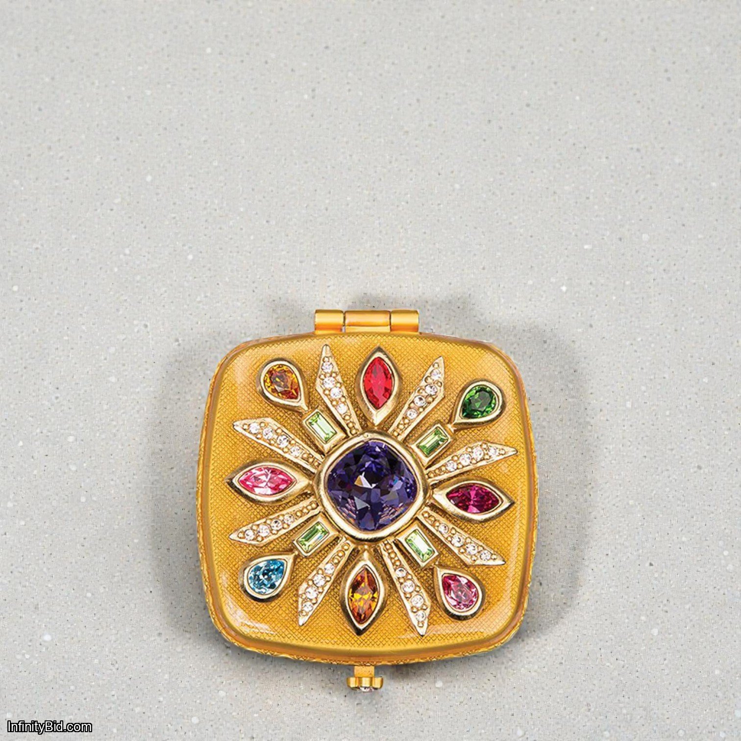 A glamorous keepsake that combines beauty and function, the Schuyler Maltese Bejeweled Compact is a true statement of luxury and style.