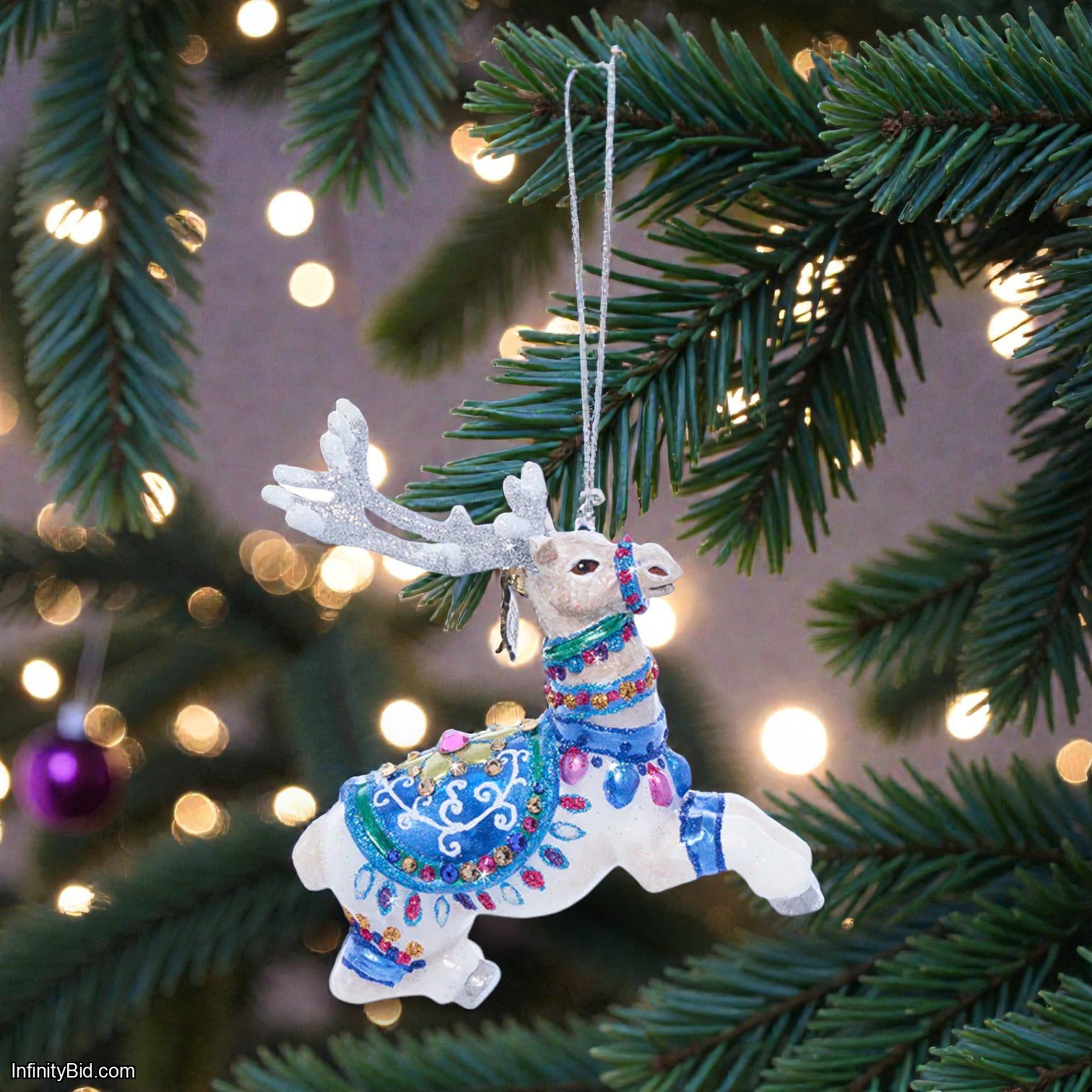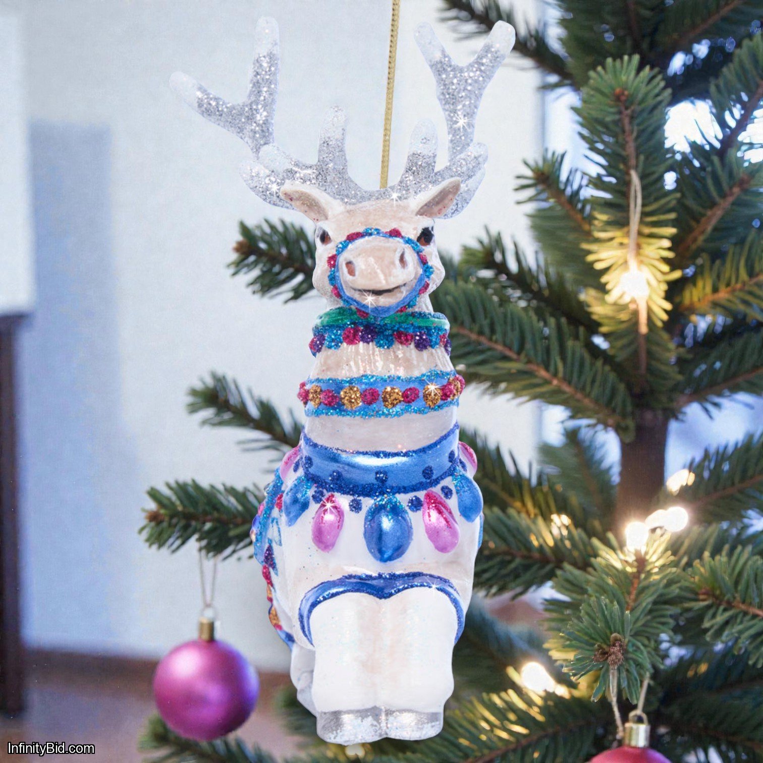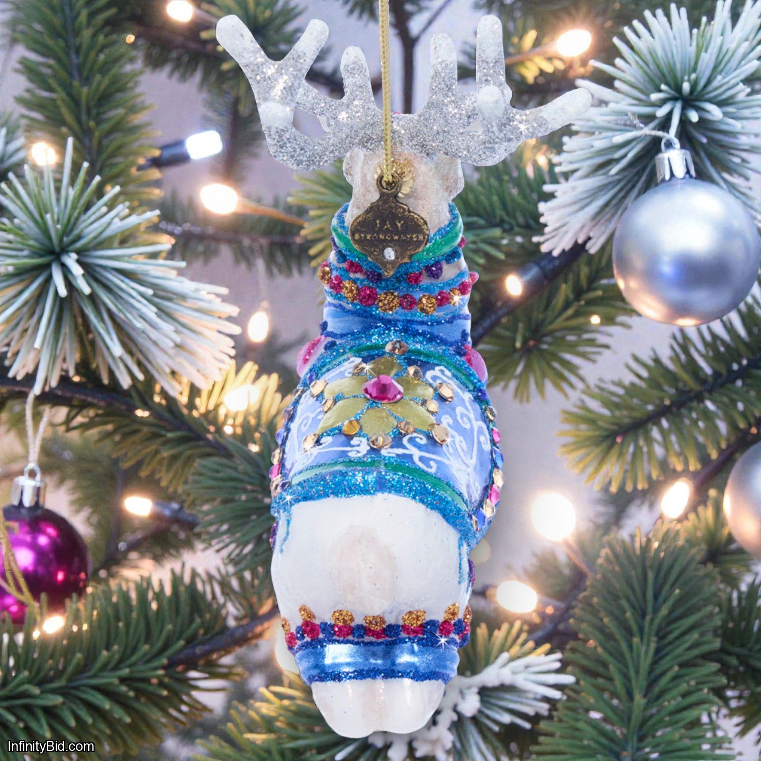 Celebrate the magic of the holiday season with this exquisite Jay Strongwater Vixen Reindeer Glass Ornament, a luxurious collectible that embodies Old World craftsmanship and festive elegance.
