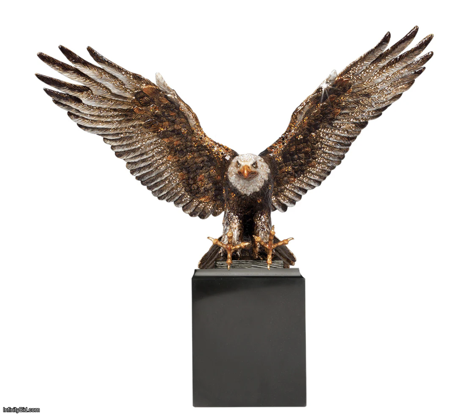 Over two days, artisans in the Rhode Island workshop hand-apply rich enamel tones across every feather to create depth, movement, and lifelike realism. More than 2,000 European crystals are then individually set, giving the eagle a breathtaking shimmer that shifts in the light. A carved black marble plinth provides a commanding foundation for this exceptional collectible.