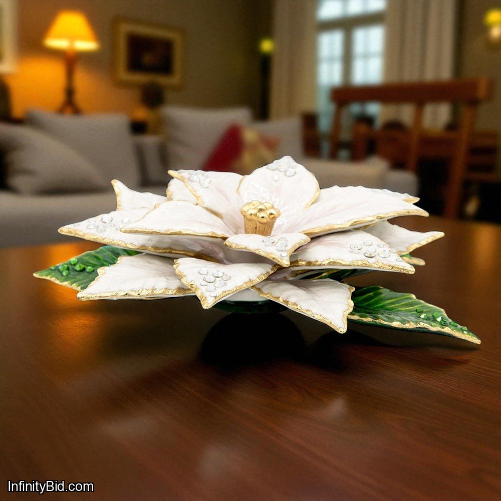✔ Elegant Holiday Design: Pearlescent white poinsettia adorned with sparkling crystals
