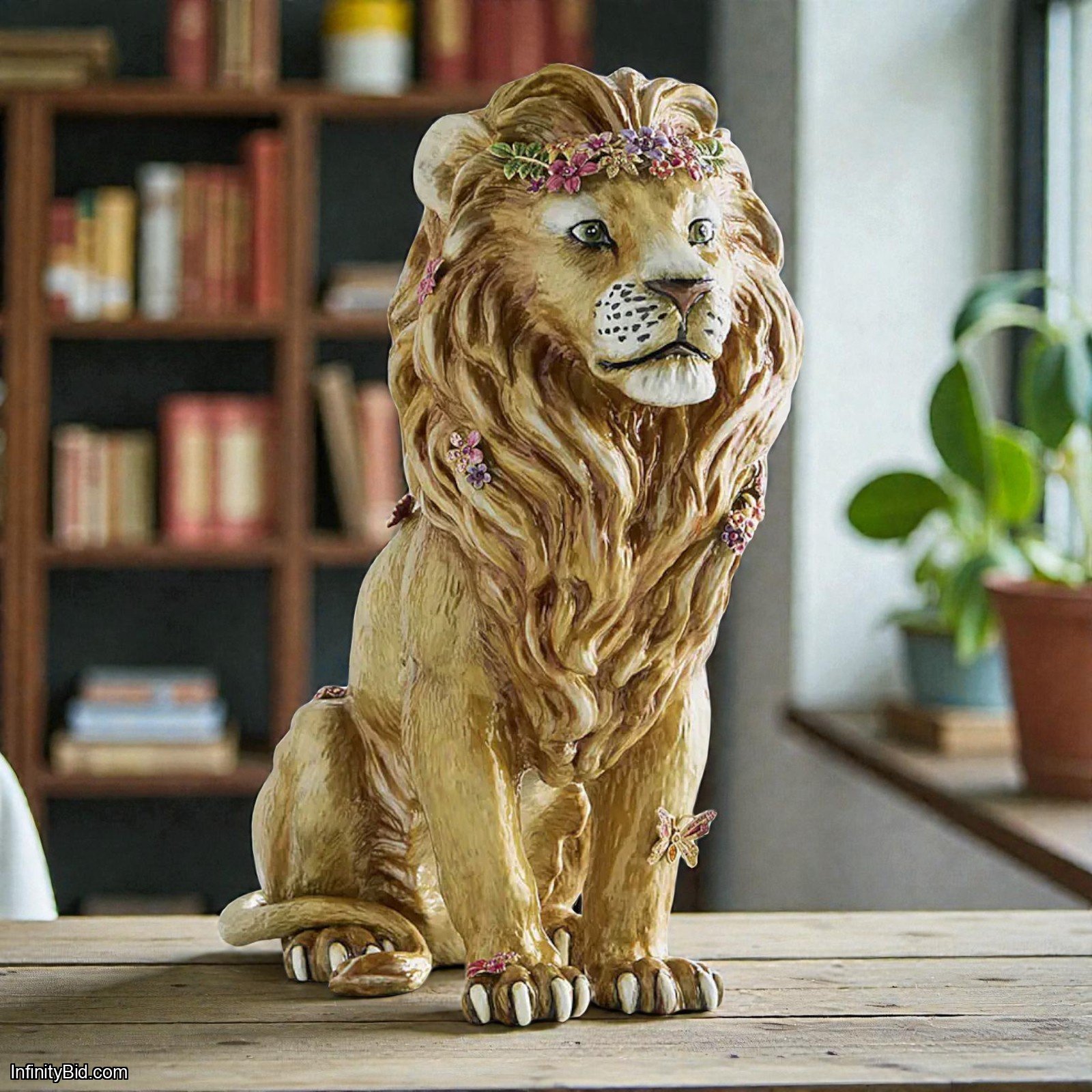 Standing tall at 19", the Zar Lion is meticulously cast in brass and aluminum, then lavishly adorned with hand-set Swarovski® crystals that catch the light from every angle. Its powerful stance and regal detailing make it a breathtaking centerpiece for any luxury décor setting.