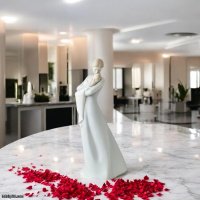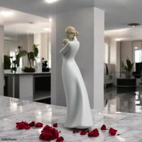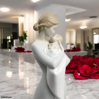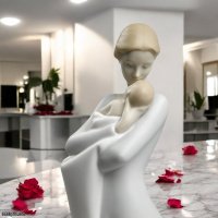 Artistic Purity and Stylized Design Breaking away from traditional realism, A Mother’s Embrace features a sleek, elongated form and a flowing gown that emphasizes the protective posture of the mother. The contrast between the high-gloss finish and the smooth, sculpted surfaces creates a play of light that highlights the mother’s downward gaze and the tender way she supports her child. This is a sophisticated interpretation of motherhood that fits perfectly in both contemporary and classic home interiors.
