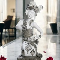 Bring elegance and cultural charm to your collection with this exquisite Bali Dancer Kneeling figurine by Lladró. Designed by renowned sculptor Francisco Polope, this piece captures the grace and beauty of traditional Balinese dance, rendered in the sophisticated Re-Deco finish.