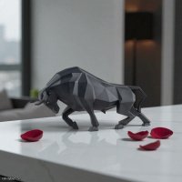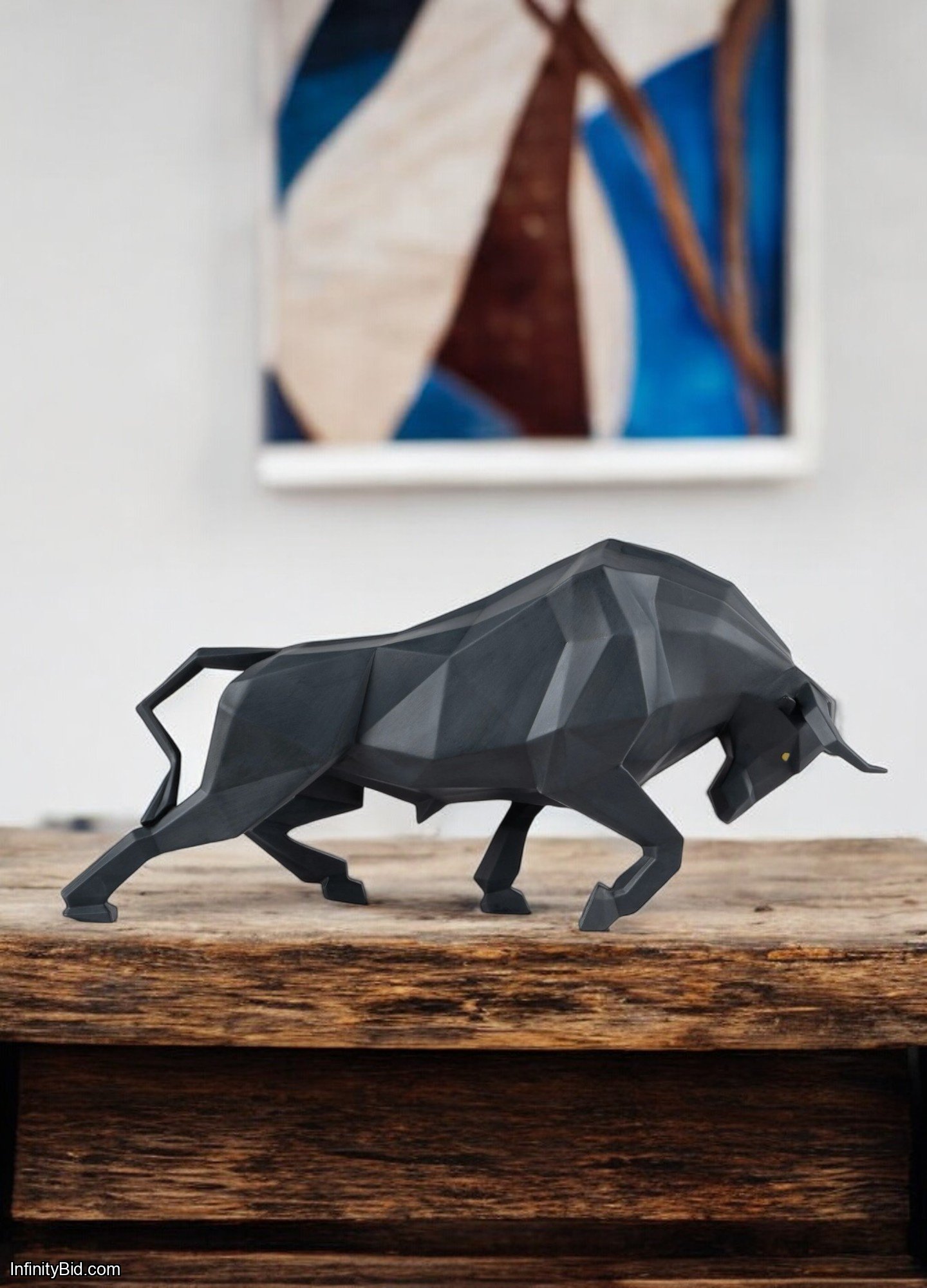 The bull, a timeless symbol of strength, determination, and courage, is reimagined with bold angular lines and a deep matte finish. A subtle touch of color in the eyes brings life and emotion to this modernist figure. Perfect for collectors and design enthusiasts alike, it makes an impressive centerpiece in any contemporary home or office.