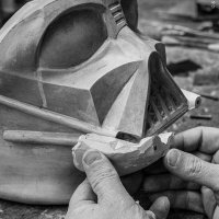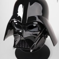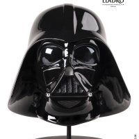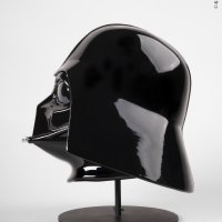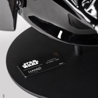 The helmet’s angular lines are accentuated by silver luster detailing on the side hinges and nose section, enhancing contrast while remaining true to the original design. The matte black grille adds depth, while the eyes—finished with pearl luster over black—create a dramatic mirrored effect that intensifies Vader’s enigmatic expression.