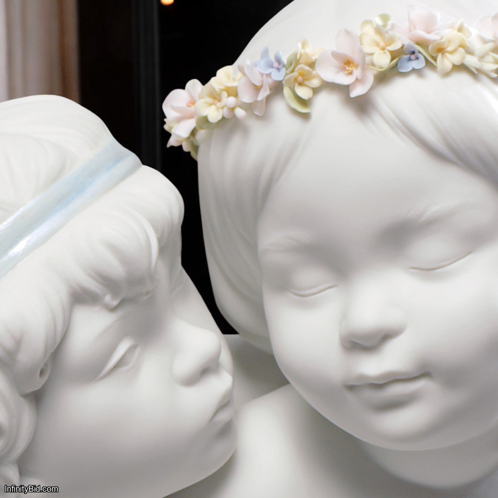 Celebrate the timeless love story of Greek mythology with Lladró's "Eros and Psyche Angels" figurine. This enchanting matte white porcelain piece captures the tender connection between Eros, the god of love, and Psyche, the soul, reimagined as two angelic children.