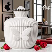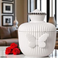 This exquisite porcelain jewelry box stands 8¼ inches tall and serves not only as a functional storage piece but also as a luxurious decorative accent. Crafted in glossy white porcelain, it features unique artistic details that reflect good fortune and style, making it the perfect gift or collector's item.