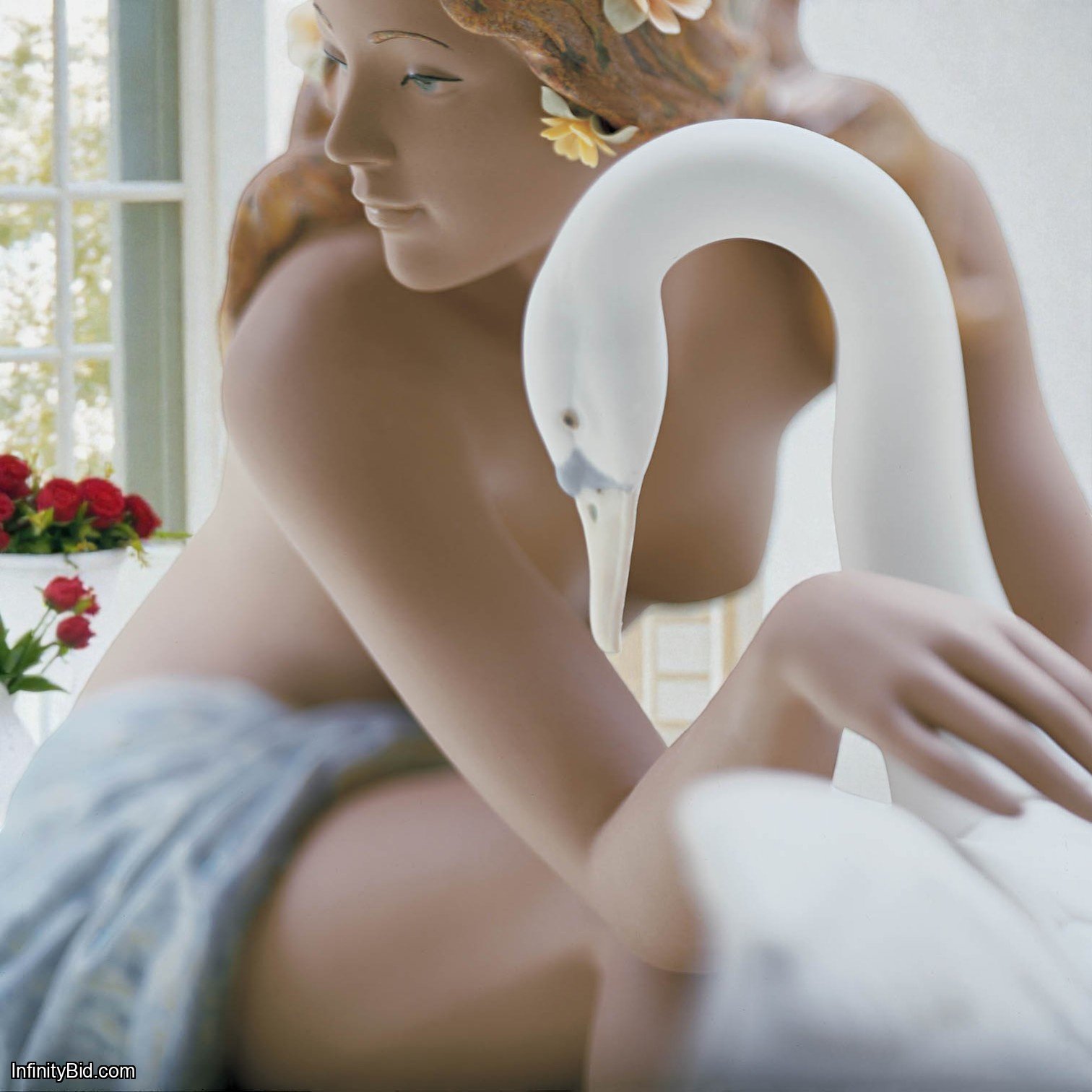 The sculpture highlights the perfection of the female form, complemented by the softness of the swan and the delicate flowers adorning Leda’s hair. Every curve and detail reflects Lladró’s exceptional artistry and sculptural sensitivity.