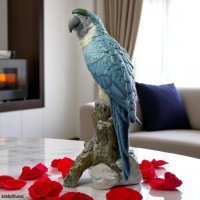 Unlike traditional Lladró pieces known for their soft watercolor tones, this sculpture features enamels applied across a large surface area, resulting in some of the most striking and saturated colors in the brand’s range. The deep blue of the back feathers is particularly distinctive and represents a bold departure from Lladró’s classic aesthetic. Crafted at almost real size, the piece delivers a strong visual presence and lifelike impact.