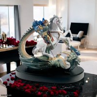 Enter the realm of legend with the Lladró Saint George and the Dragon Sculpture, a monumental porcelain masterpiece that captures one of Europe’s most enduring symbols of heroism and faith. Produced in a strictly limited edition of only 350 pieces worldwide, this extraordinary work embodies the triumph of courage, purity, and righteousness over chaos and evil.
