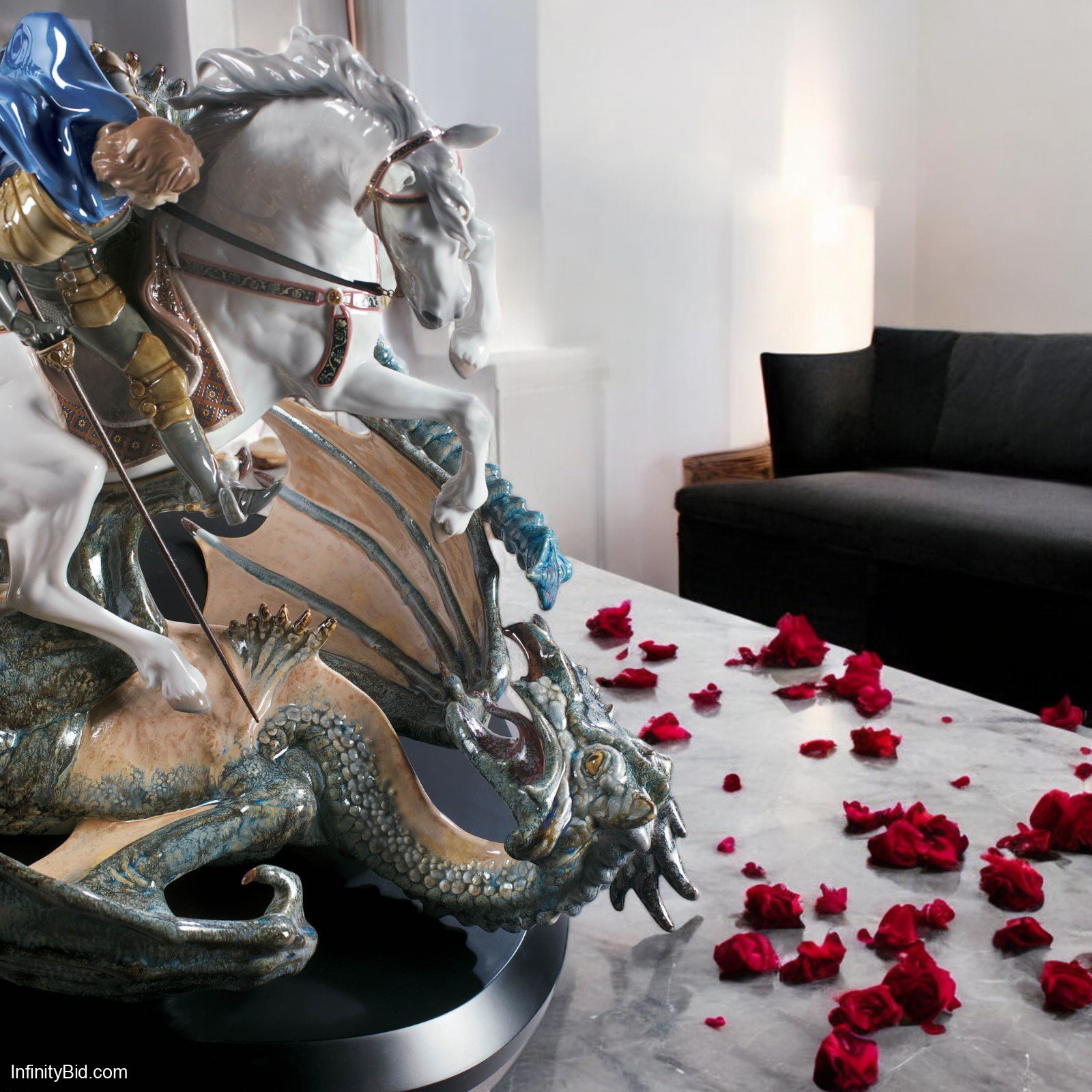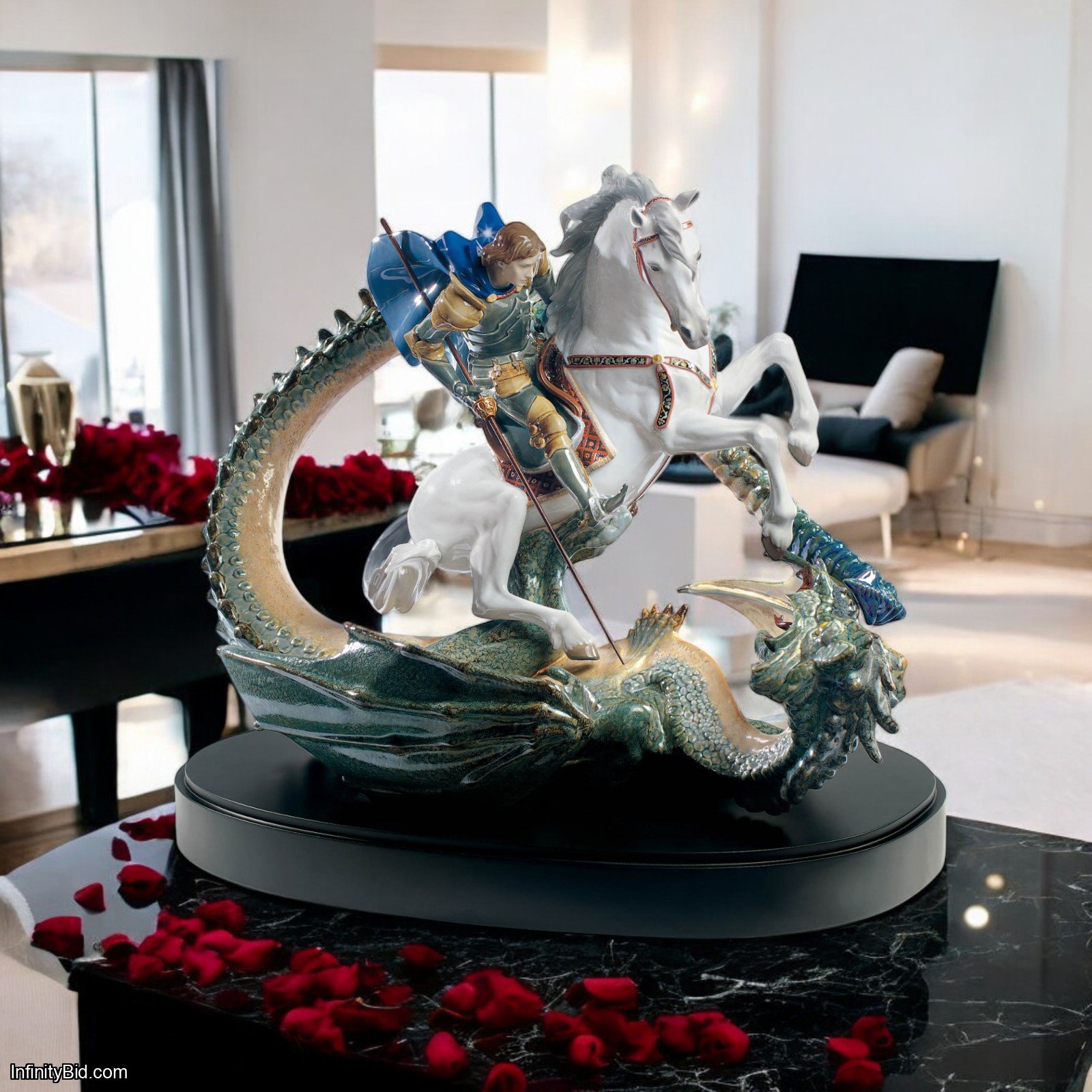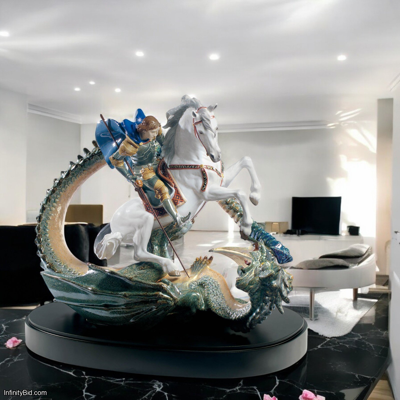 A commanding and symbolic work of art, the Lladró Saint George and the Dragon Sculpture stands as a powerful representation of bravery, nobility, and the eternal struggle between good and evil. Its rarity, scale, and artistic depth make it a cornerstone piece for serious collectors of fine porcelain, religious art, and European mythology.