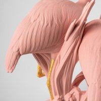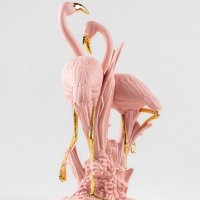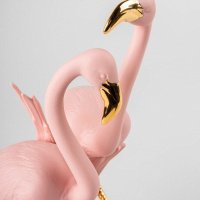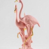 Flamingos are among the most recognizable and stylized birds in the world - symbols of beauty, balance, friendship, and lasting bonds. In ancient Egypt, their flame-like color was associated with Ra, the sun god, adding a layer of mythological meaning to their presence. Lladró artists reinterpret this powerful symbolism through a contemporary sculptural design in matte porcelain enhanced with luminous gold luster.