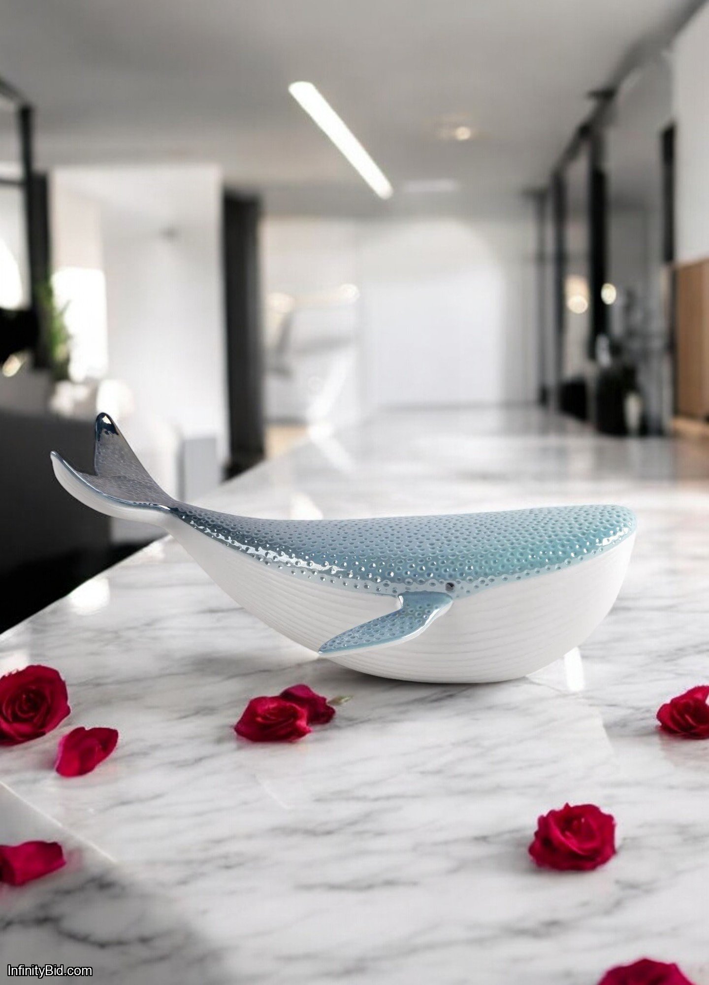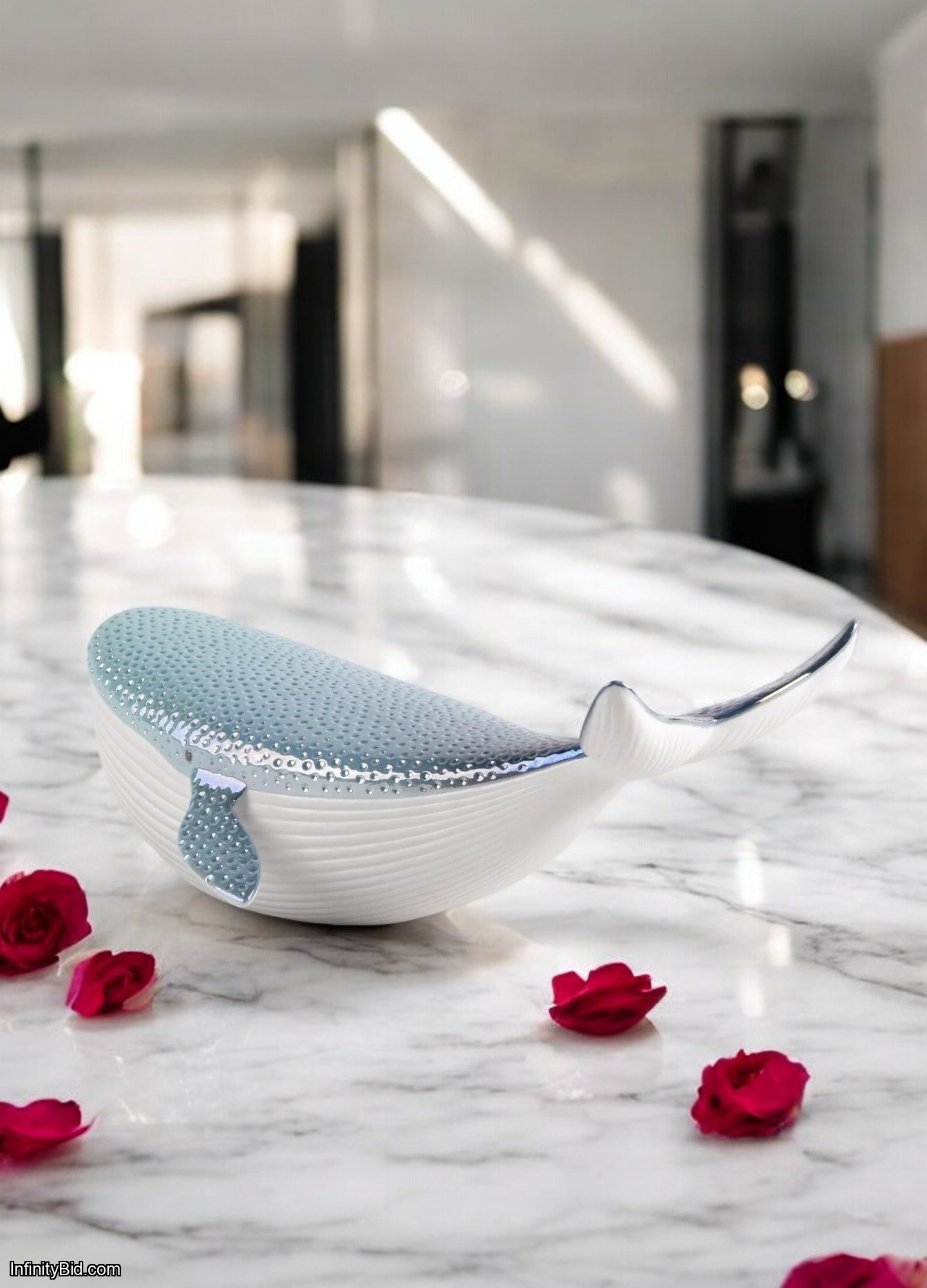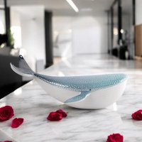 Handcrafted in Valencia, Spain, both sculptures are created using a sophisticated blend of gloss and matte porcelain, allowing light to flow across their sculptural curves while enhancing texture and depth. Together they represent the balance between strength and serenity — a tribute to the whale as a symbol of wisdom, protection, peace, and the vast beauty of the sea.