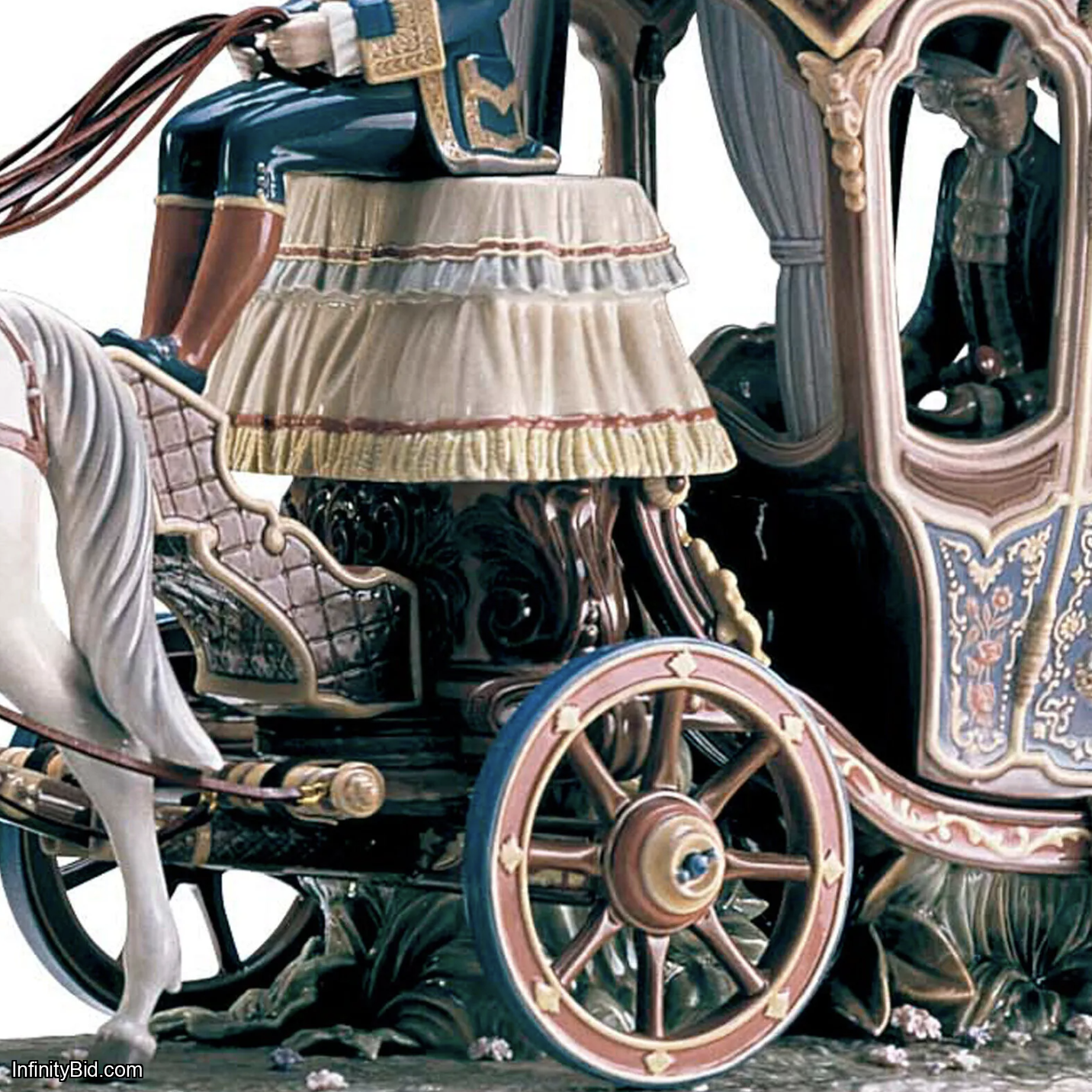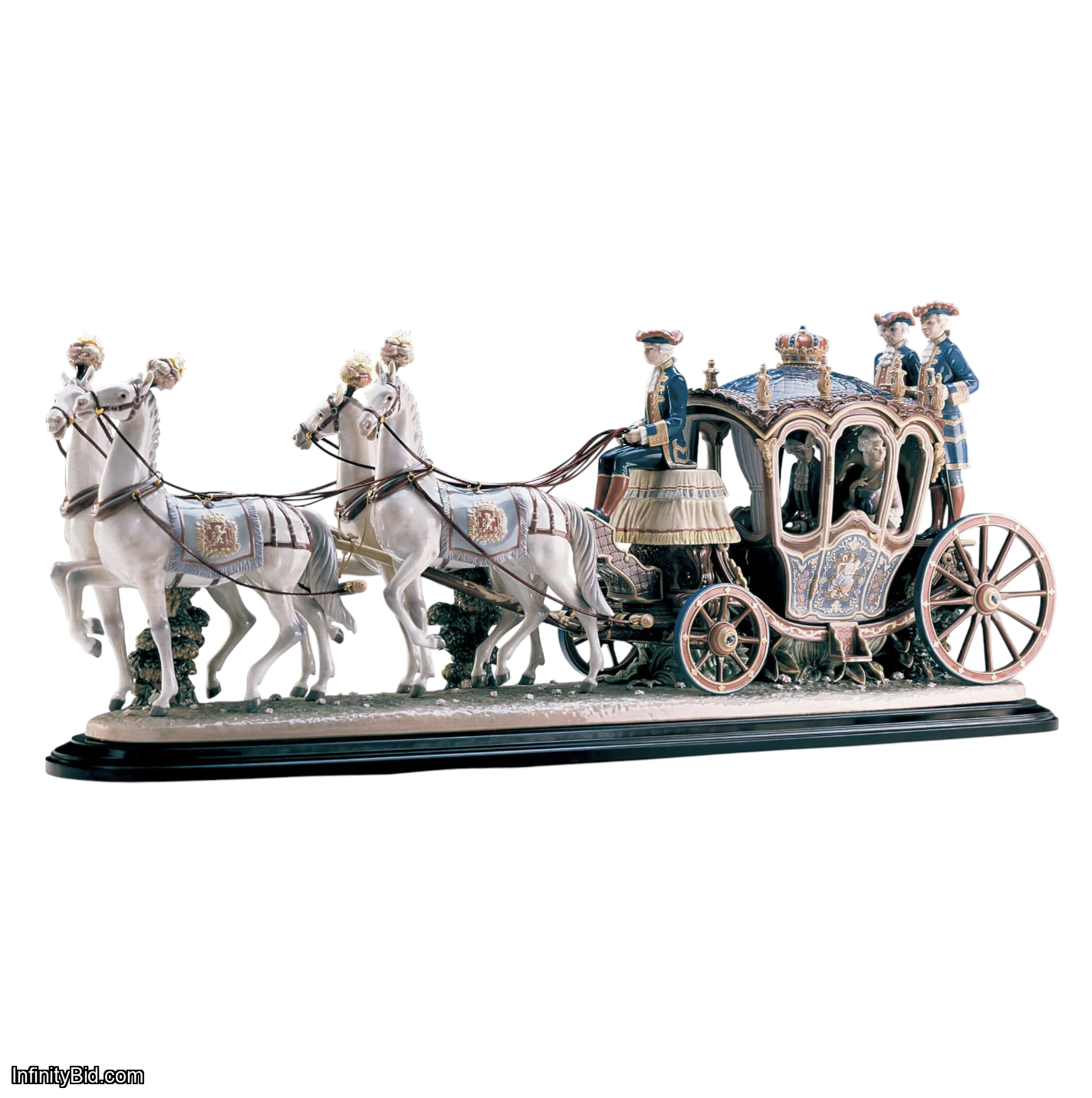 One of the most ambitious and spectacular creations ever produced by Lladró, the XVIIIth Century Coach Sculpture is a museum-level High Porcelain masterpiece capturing the splendor of European Baroque court life in extraordinary detail. This monumental limited edition portrays an opulent 18th century ceremonial carriage drawn by four white horses, crafted with breathtaking artistic and technical precision.