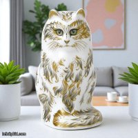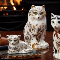 The Fifi Cat figurine is delicately handcrafted and adorned with real 22-carat gold, making it an exceptional piece of English fine china collectibles. Its charming design and high-quality craftsmanship make it perfect for any home décor collection or as a gift-boxed collectible cat ornament for someone special.