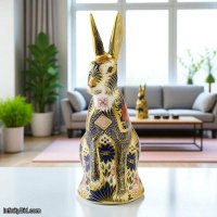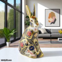 The Royal Crown Derby Old Imari Solid Gold Band Hare is a majestic expression of British porcelain artistry. Showcasing the iconic Old Imari 1128 pattern in deep cobalt blue, vibrant iron red, and hand-applied 22-carat gold, this noble hare is further elevated by the collection’s signature solid gold banding.