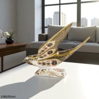Celebrate the grace and symbolism of the swallow with this exquisite piece from Royal Crown Derby’s prestigious Solid Gold Band Collection. The Old Imari Solid Gold Band Swallow is beautifully crafted from fine bone china, showcasing the iconic Old Imari 1128 pattern in deep cobalt blue, rich iron red, and hand-applied 22-carat gold, including luxurious solid gold banding.