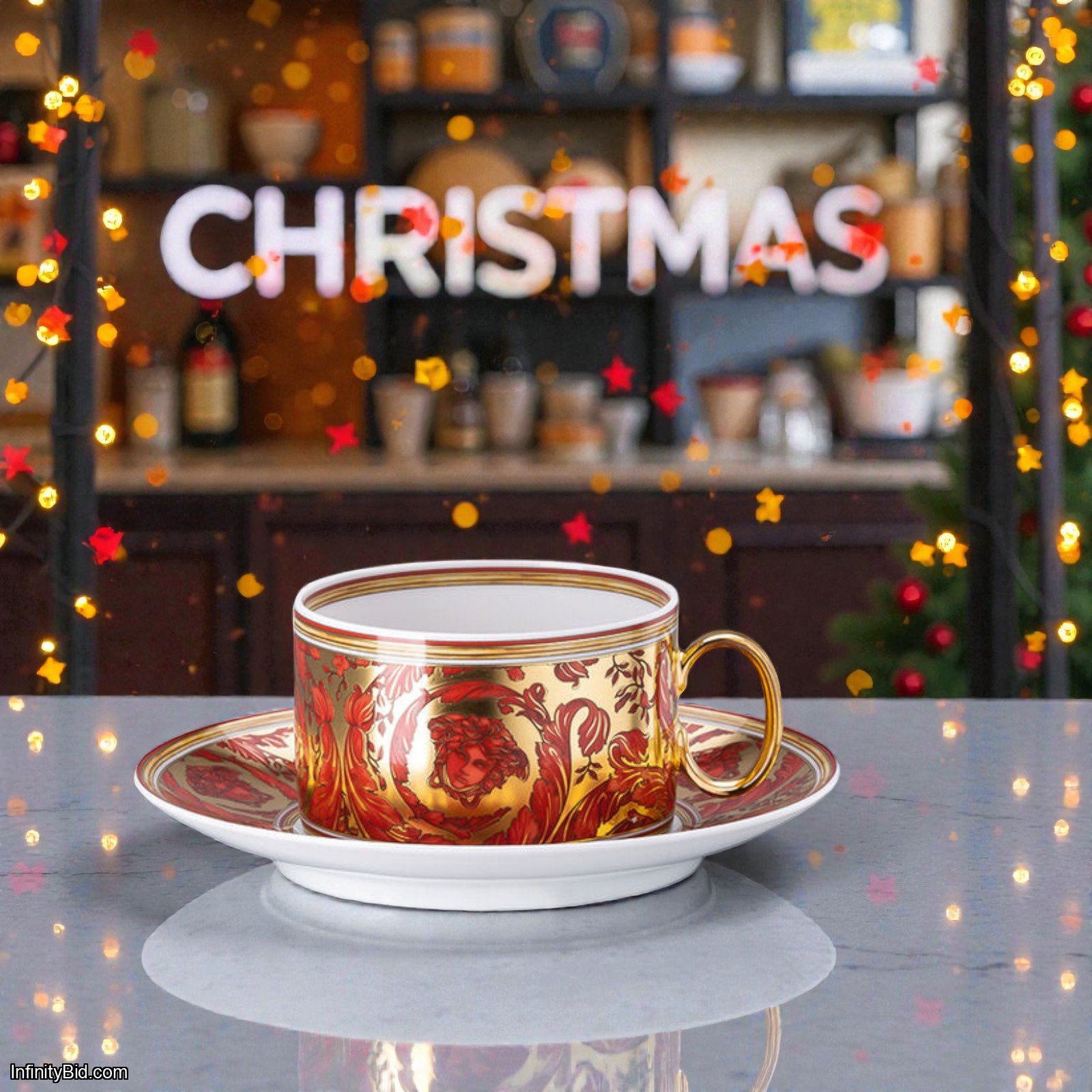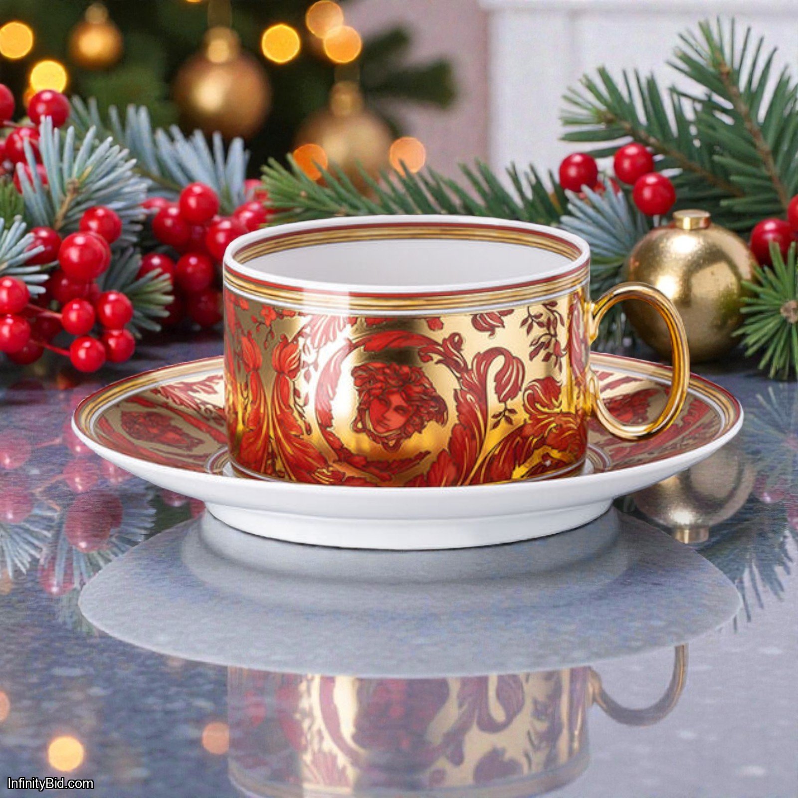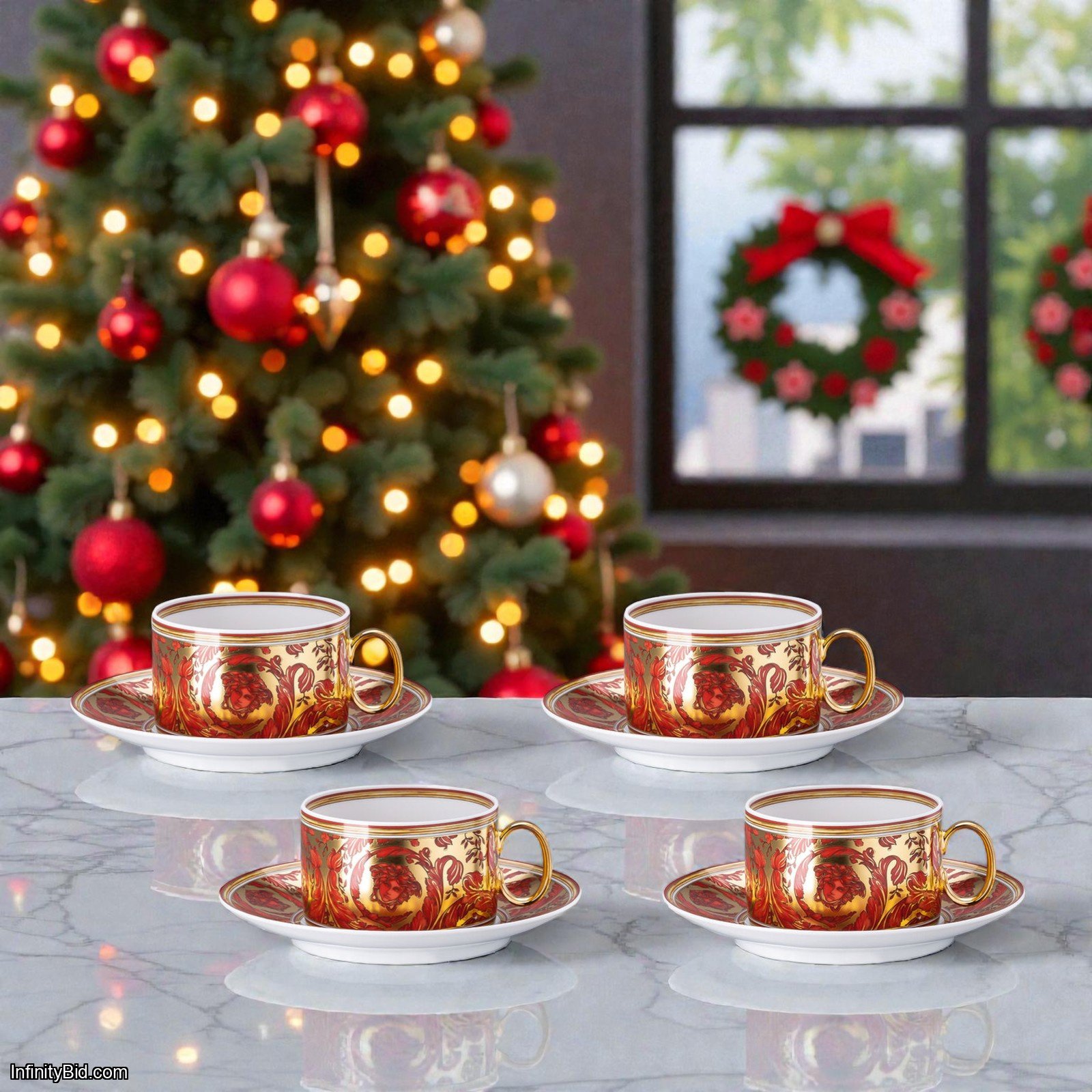 Enhance your luxury tableware collection with this Set of 4 Versace Medusa Garland Red Tea Cups & Saucers. Featuring the striking red Medusa garland design, each piece is masterfully crafted from premium porcelain in Germany. With production ending in 2025, this set is both a functional addition to your tea service and a valuable collector’s item.