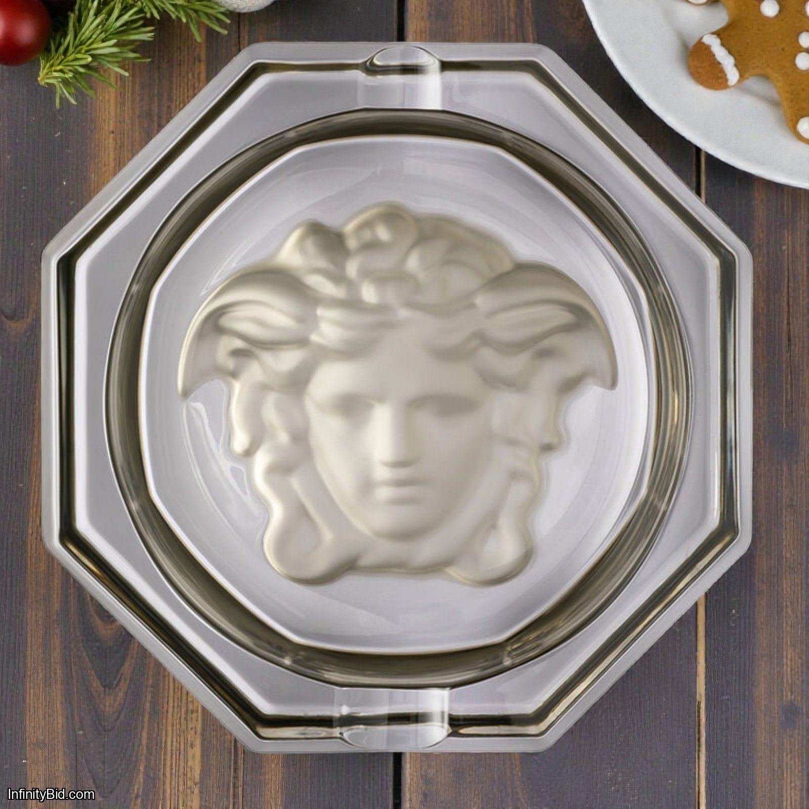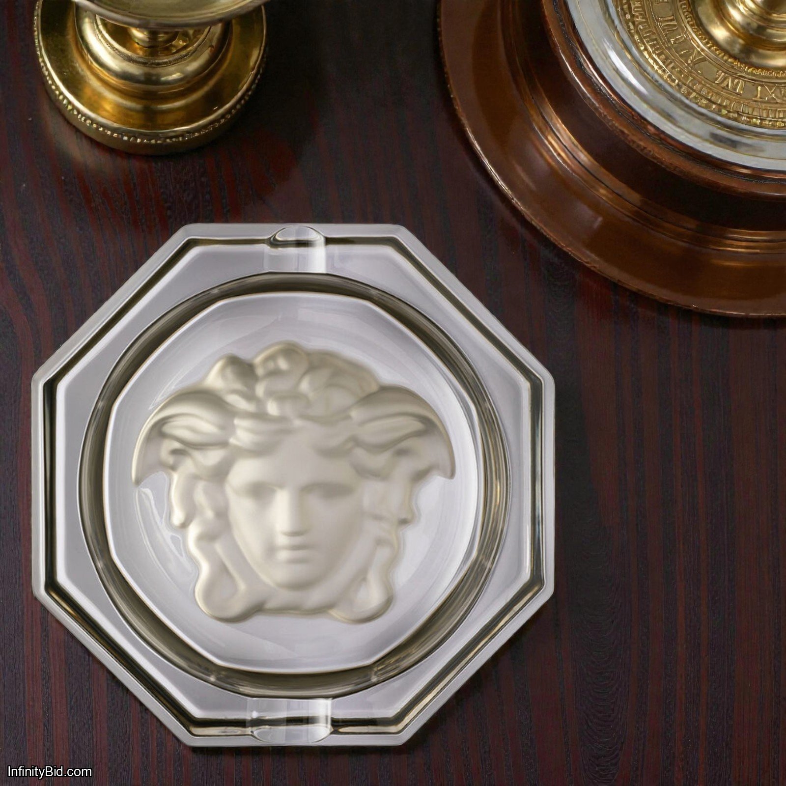 Experience luxury in every detail with the Versace Medusa Lumiere Haze Ashtray, crafted from premium crystal and featuring the iconic Medusa motif. With its shimmering “Haze” finish and elegant round shape, this piece makes a striking statement in any interior—perfect for collectors or lovers of fine Versace décor.